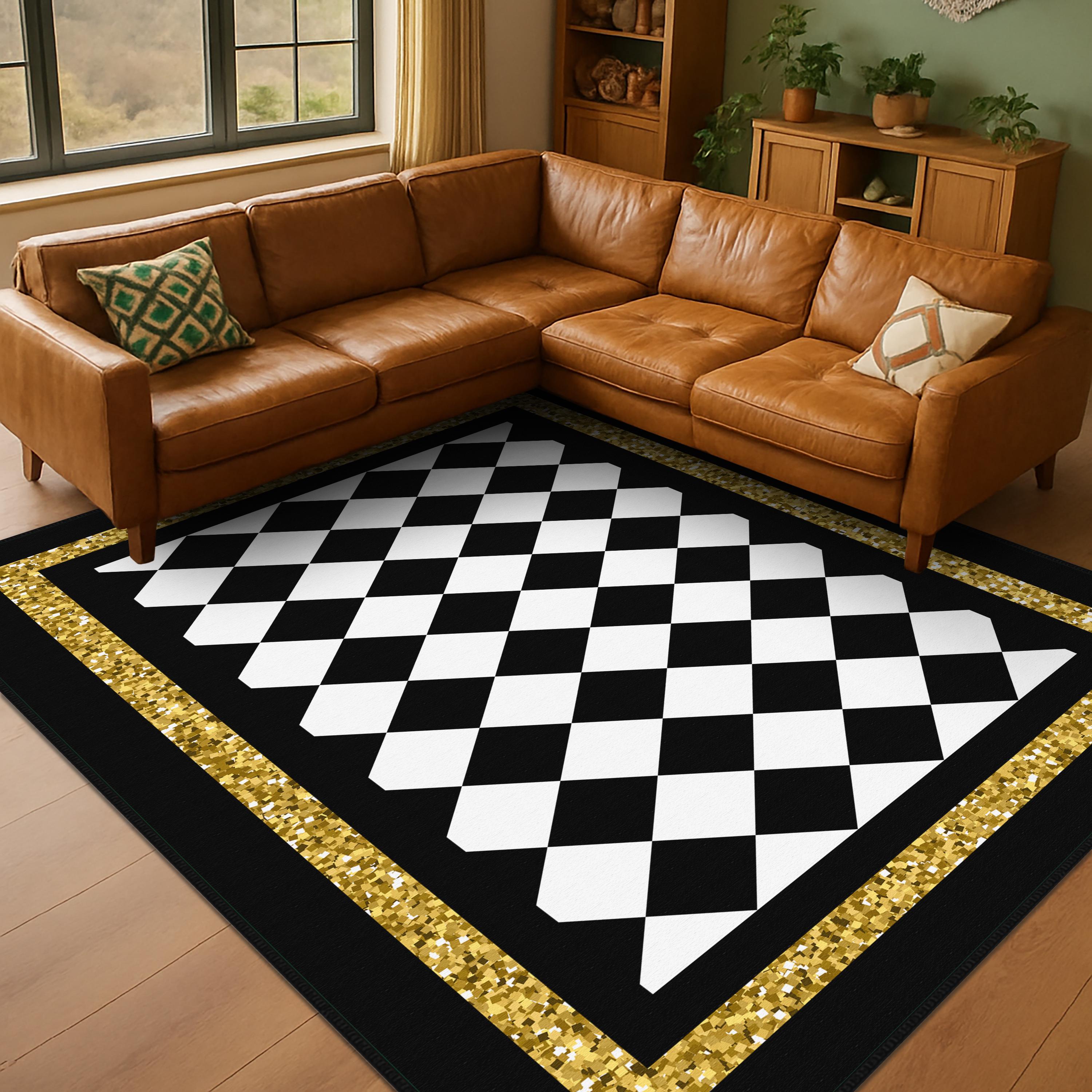 Elevate your home with this stunning black and white diamond checkered area rug featuring a glamorou...
