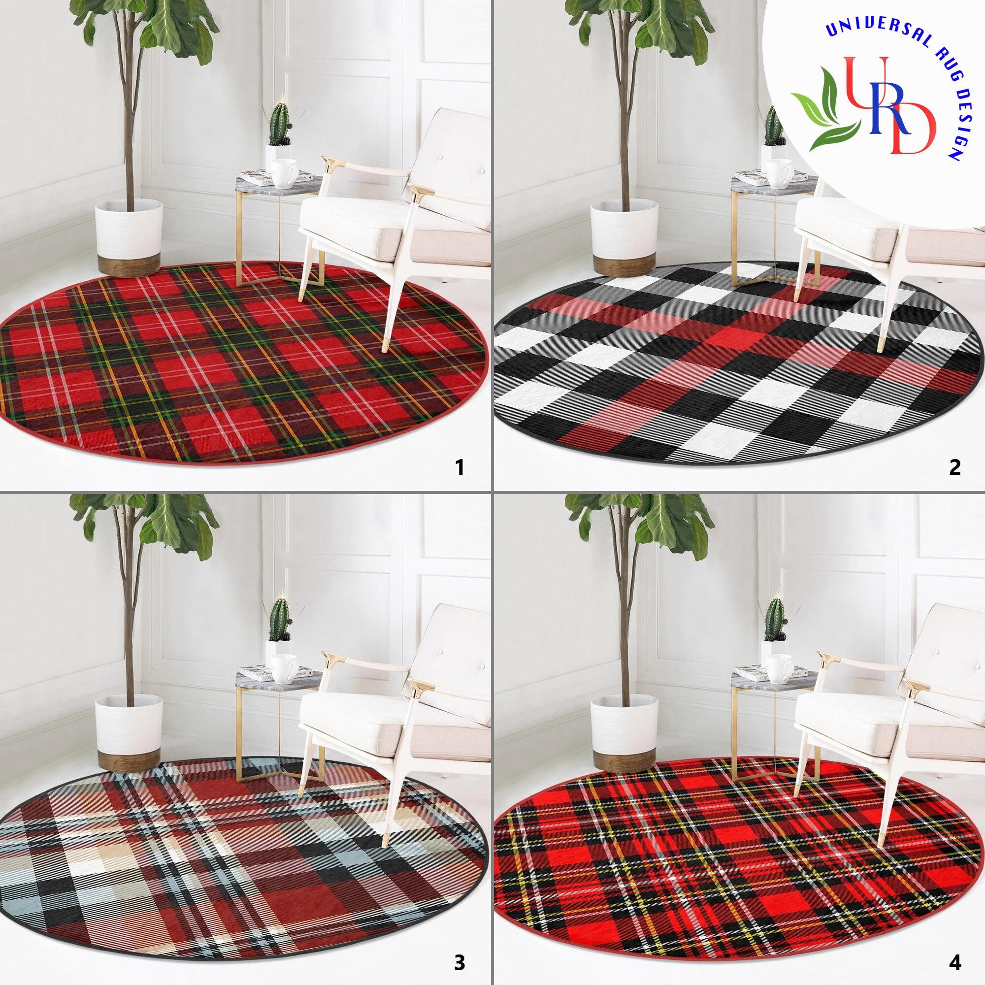Red Black Tartan Pattern Circle Rug|Plaid Round Rug|Non-Slip Round ...