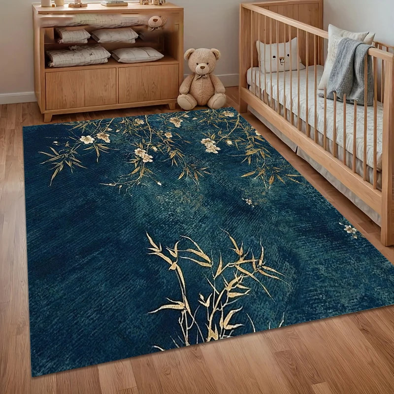 Elegant Gold Bamboo Floral Area Rug Washable Carpet for Living Room Bedroom Bay Window Non-Slip Floo...
