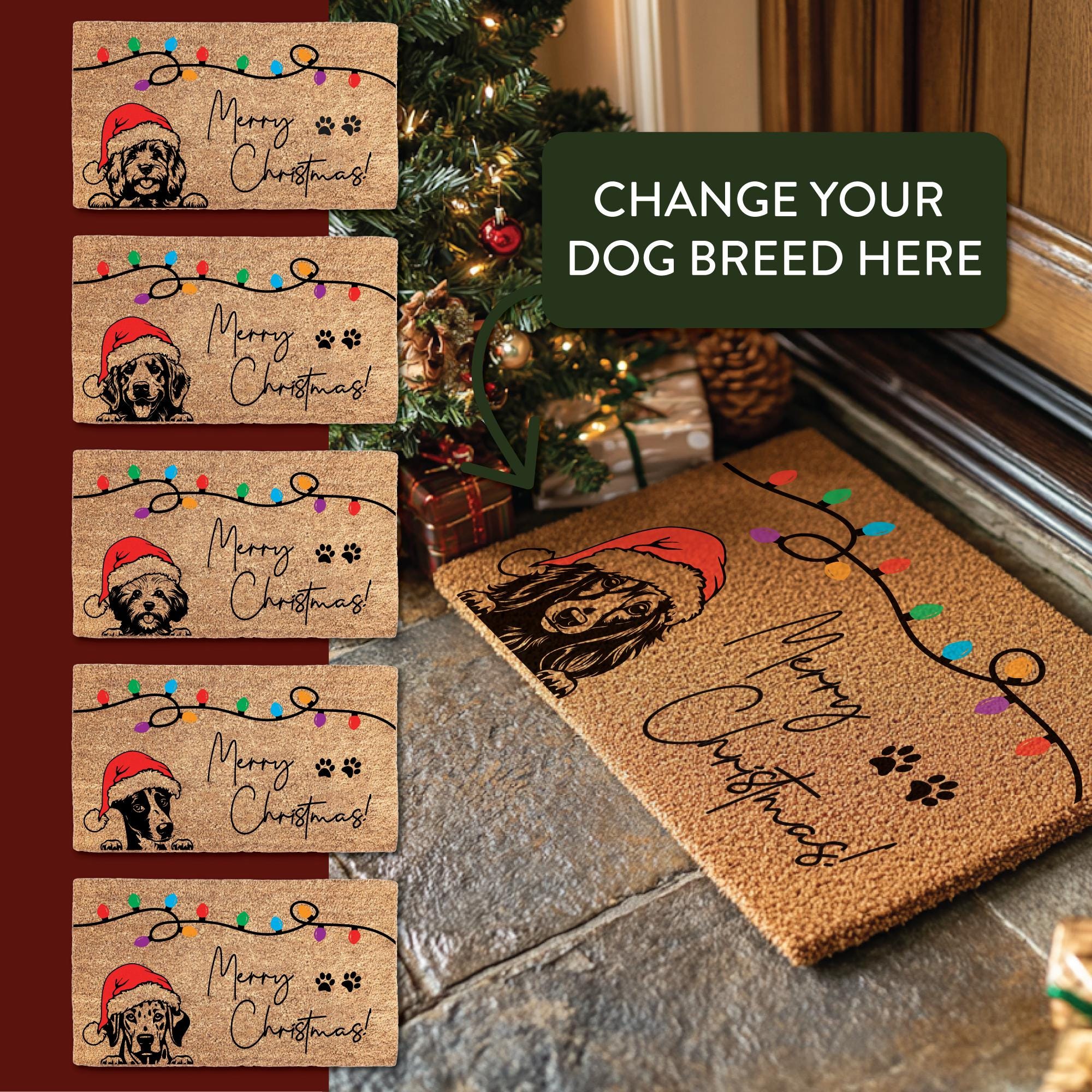 "Delight dog lovers this Christmas with a personalized doormat featuring their furry friend's n...