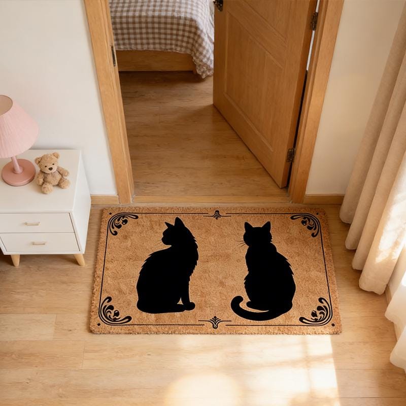 Welcome guests with feline charm using this Cat Doormat Featuring a sleek black cat silhouette, this...