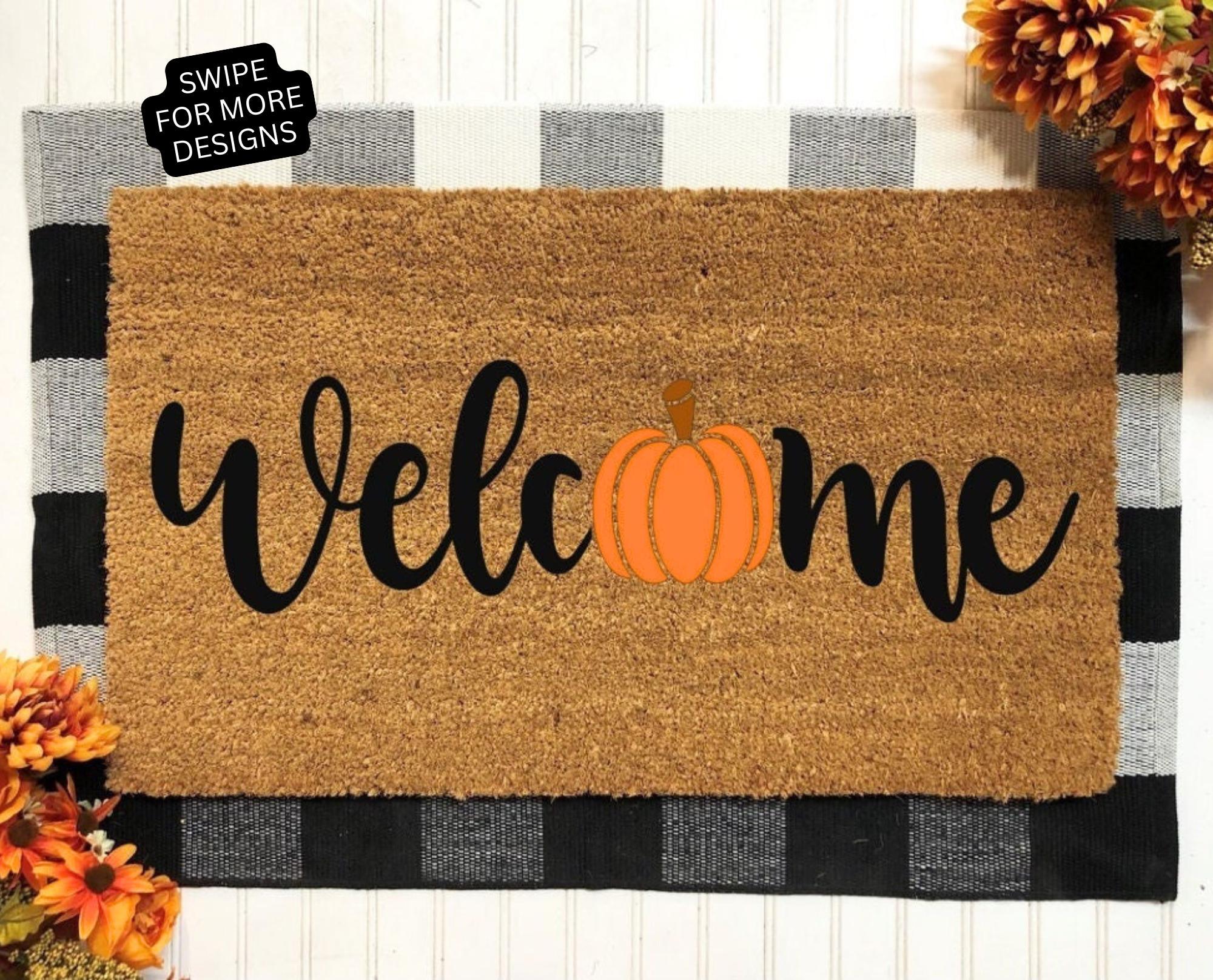 This listing is for a super cute fall Welcome coir doormat with the pumpkin design! Decorate your fr...