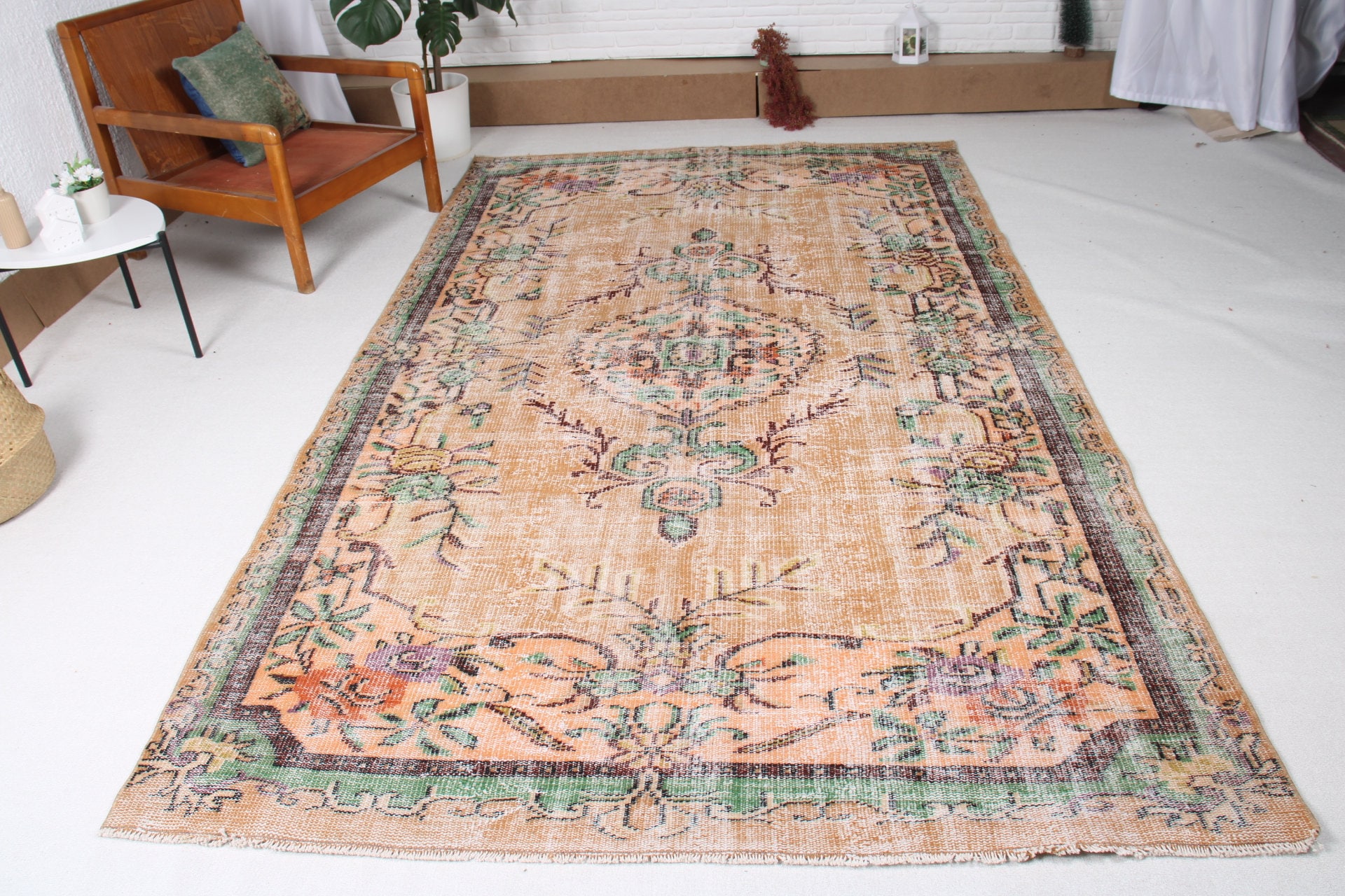 6x9 Large Oriental Rug, Vintage Turkish Rug, Large Farmhouse Rug, L...