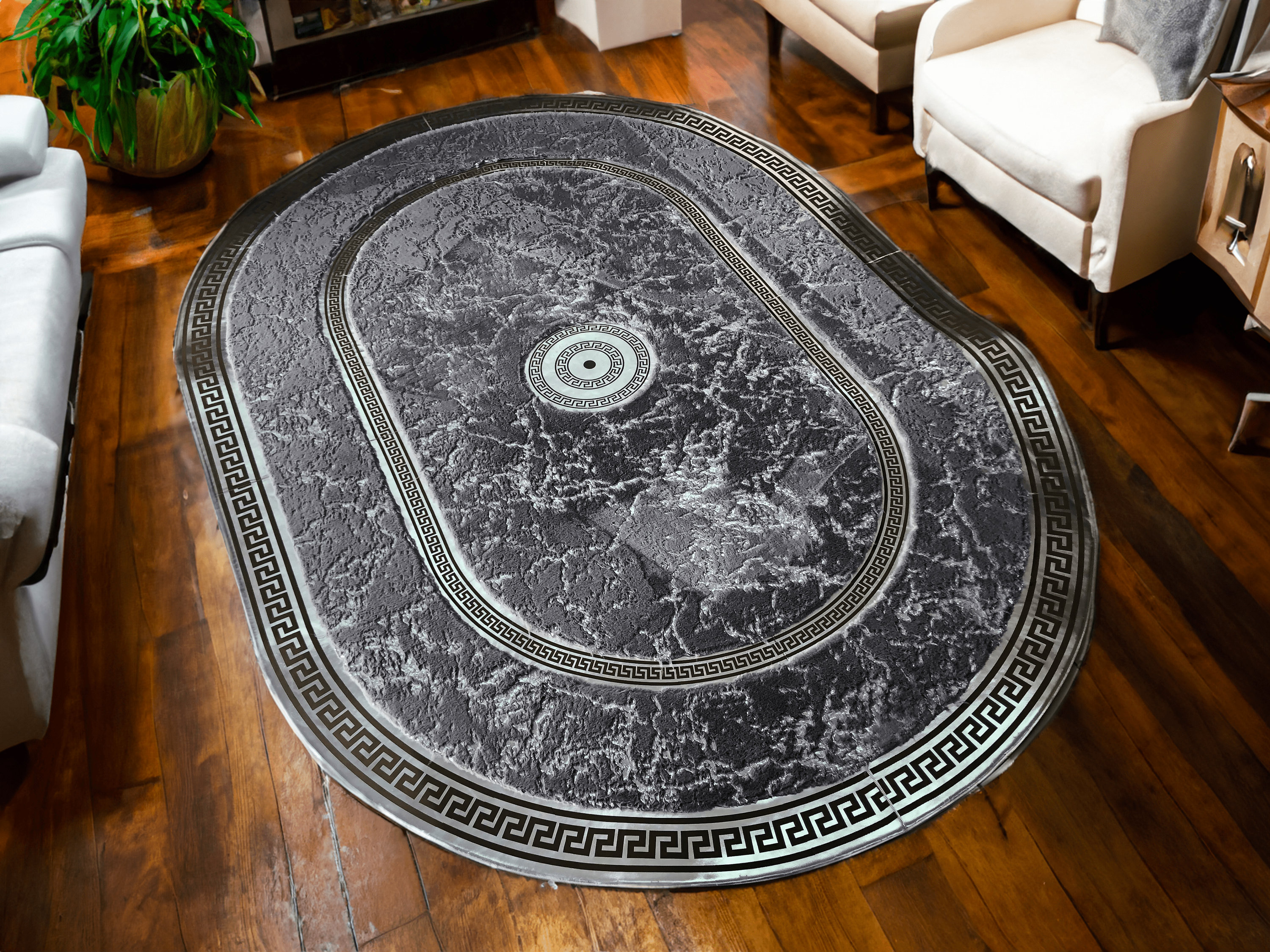 Plush Faux Fur Gray Silver Plush Soft Fluffy Area Bedroom Living Room Oval Custom Rug -Made of faux ...