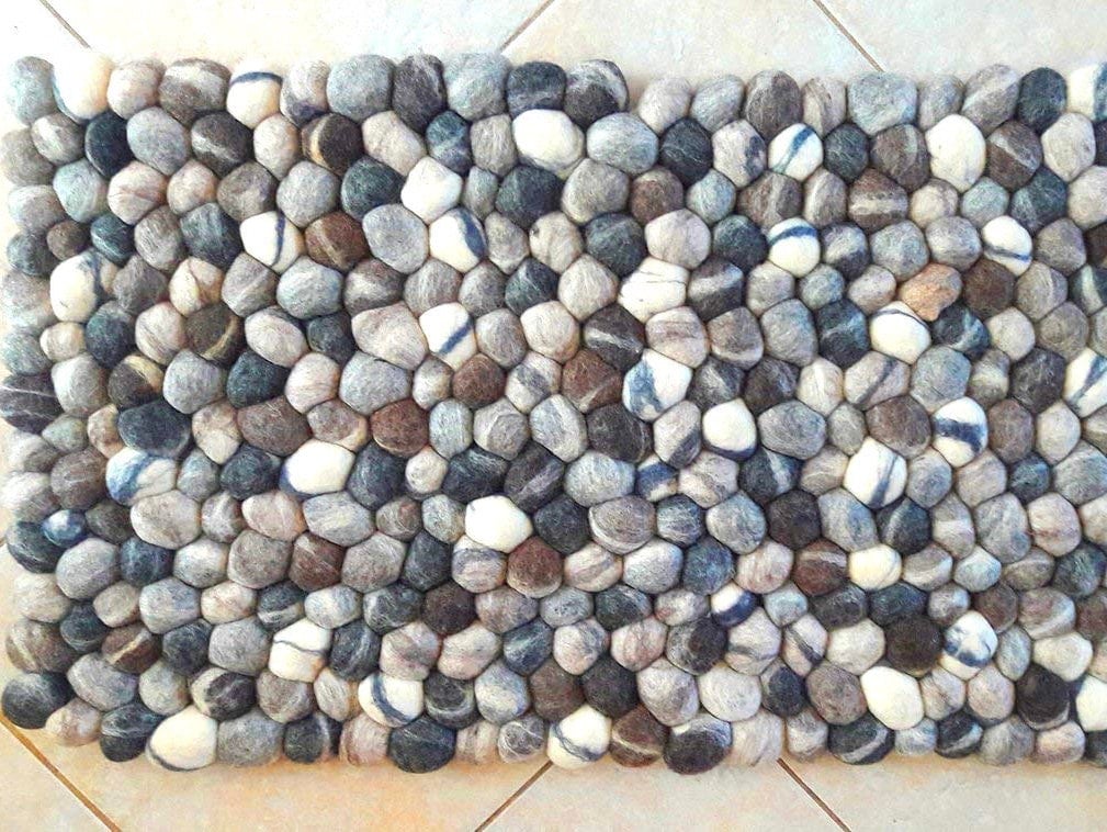 This is a stunning design and very natural looking stone river pebbles felt rug. This felt pebble ru...
