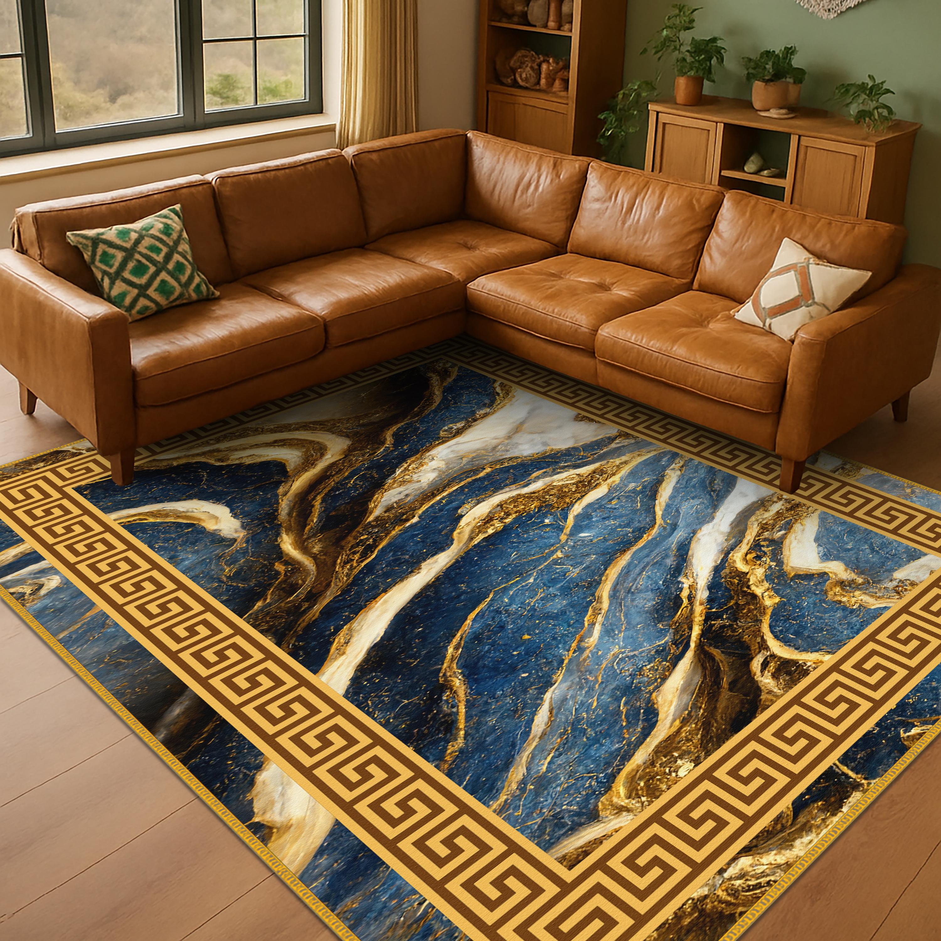 Gold Carpet, Blue Gold Marble Pattern Carpet, Gold Greek Rug, Greek...