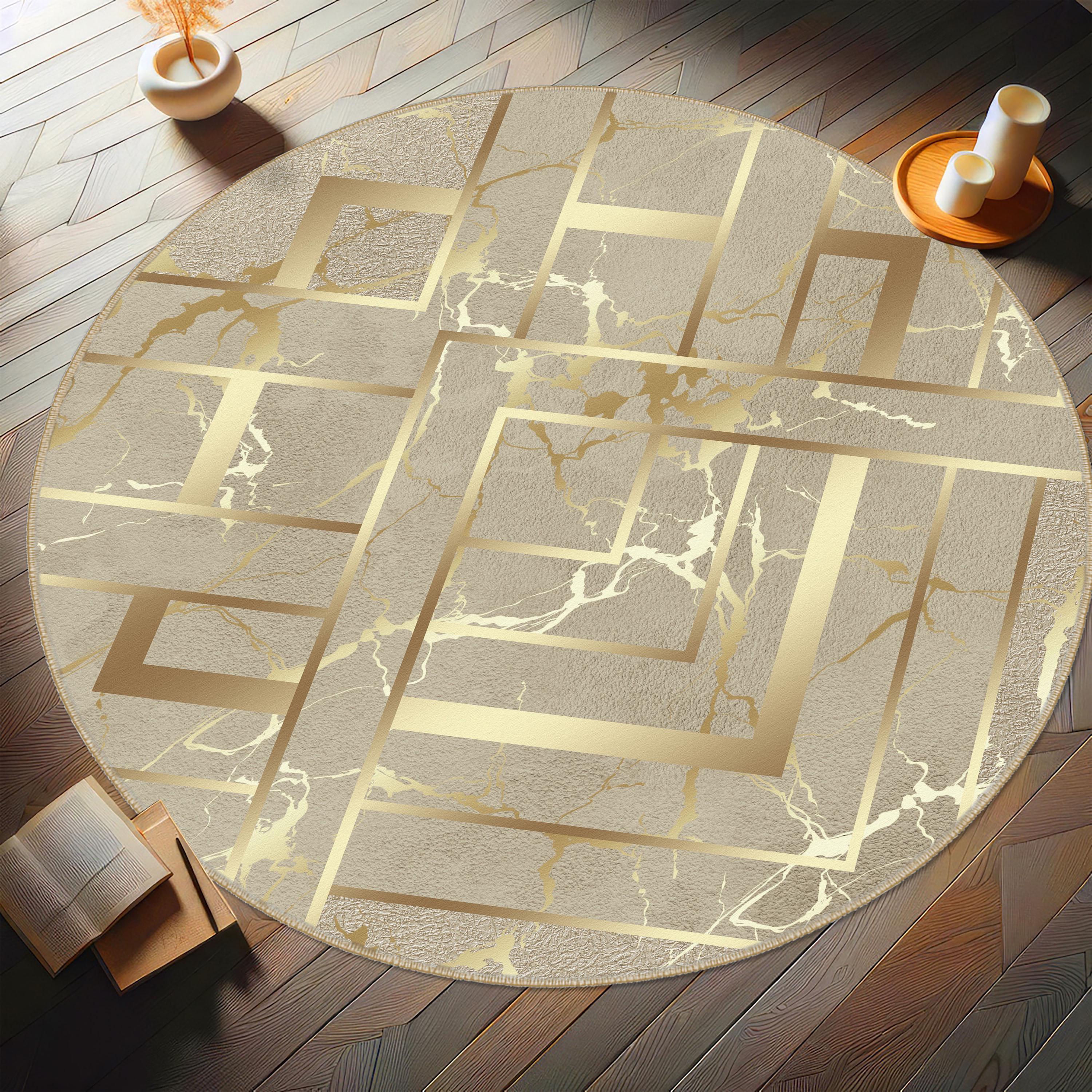 Gold Marble Themed Round Carpet, Gold Living Room Rug, Luxury Area ...