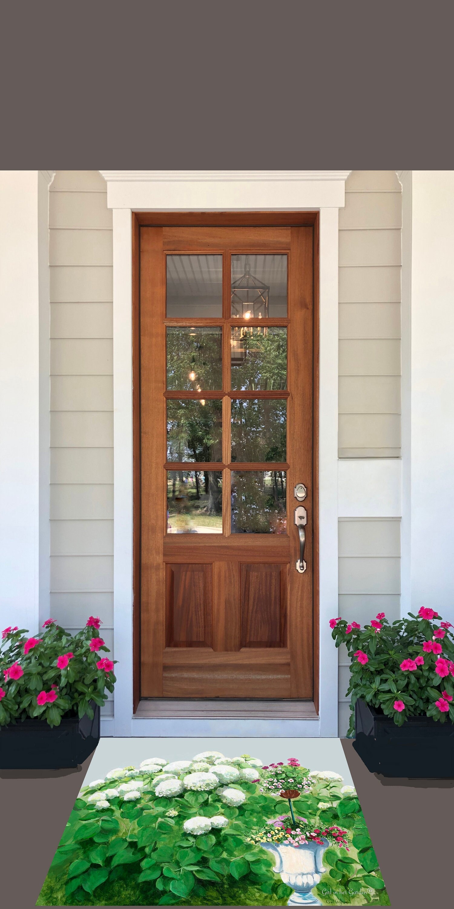 "Indoor/Outdoor door mat, 24\"x 36\" colorful, vibrant painting of Hydrangea Topiary ...