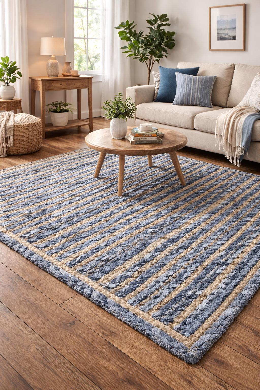 Jute Area Rug- Beautiful Jute Chindi Braided Rug Hand Woven Area Ru...