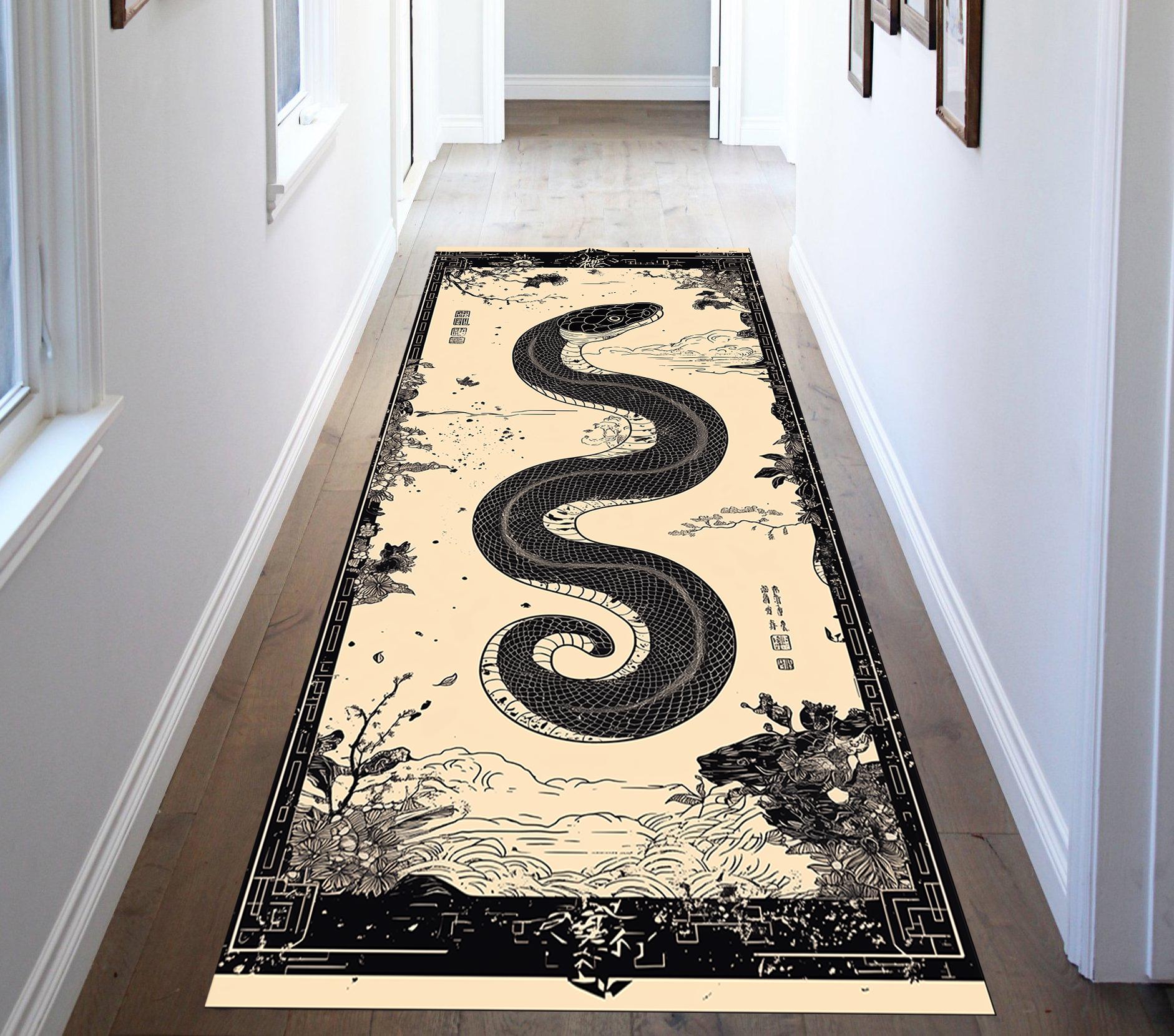 Japanese Style Snake Runner Rug, Snake Area Rug, Japanese Area Rug,...
