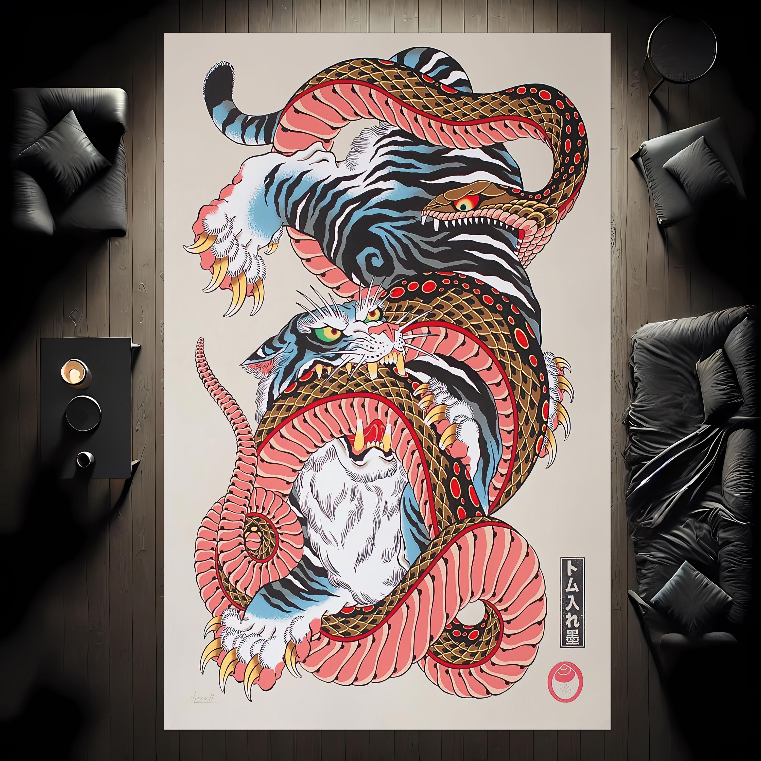 Japanese Style Snake Runner Rug, Snake Area Rug, Japanese Area Rug, Snake Runner, Japanese Rug, Japa...