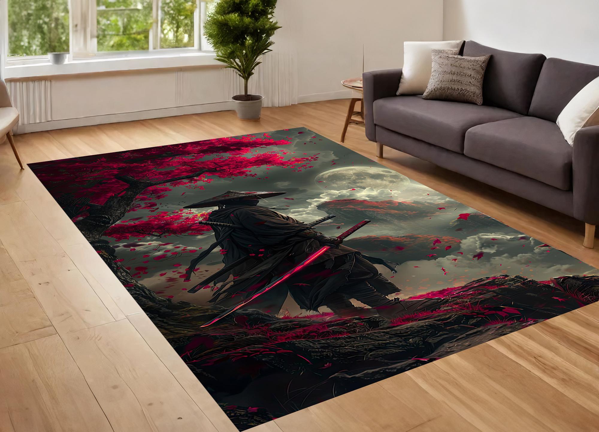 Samurai Rug, Japanese Themed Rug, Japanese Samurai Rug, Japanese Wa...