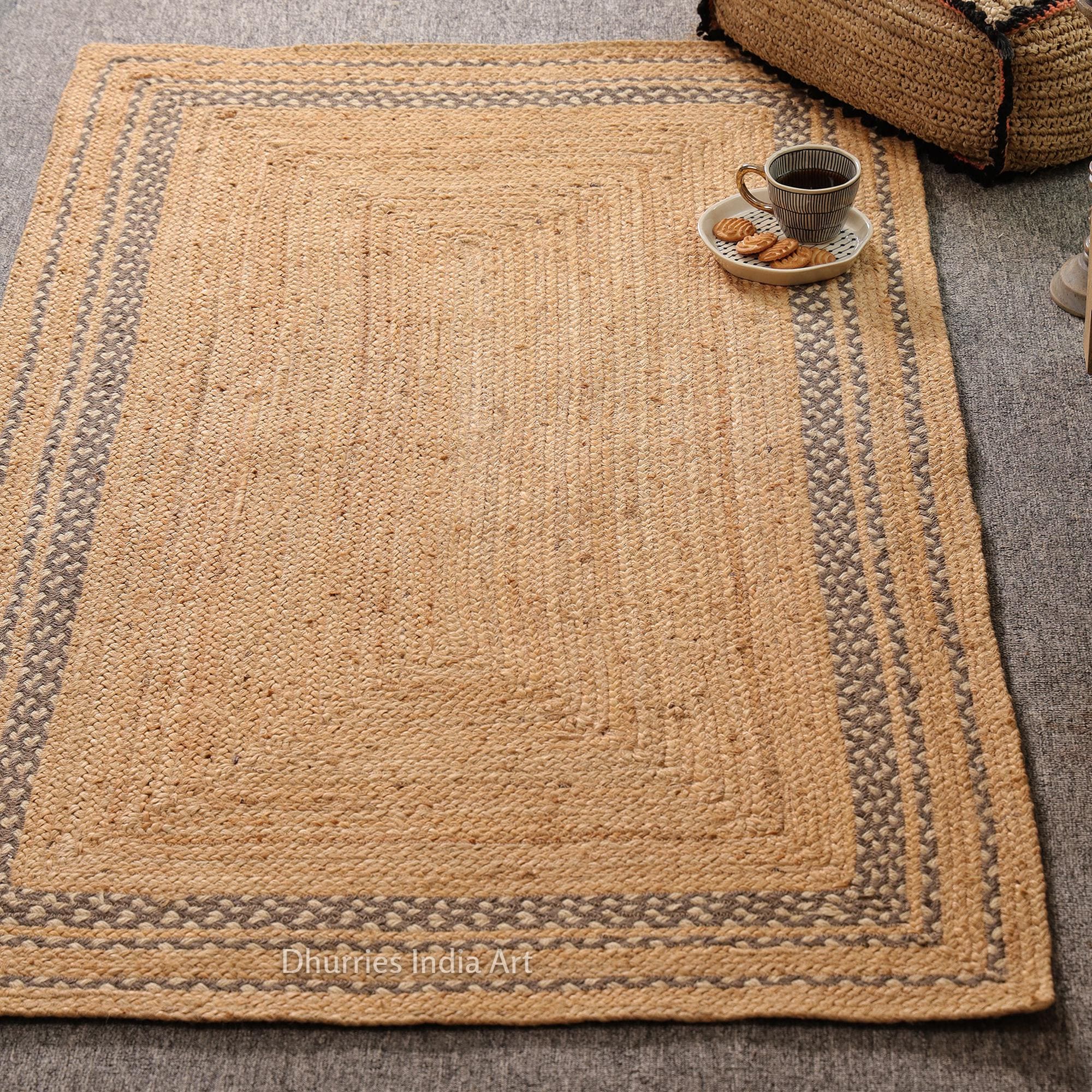 "Handmade Natural Jute Rug, Solid Border jute rug, custom size rug, Braided rug, jute Area rug,...