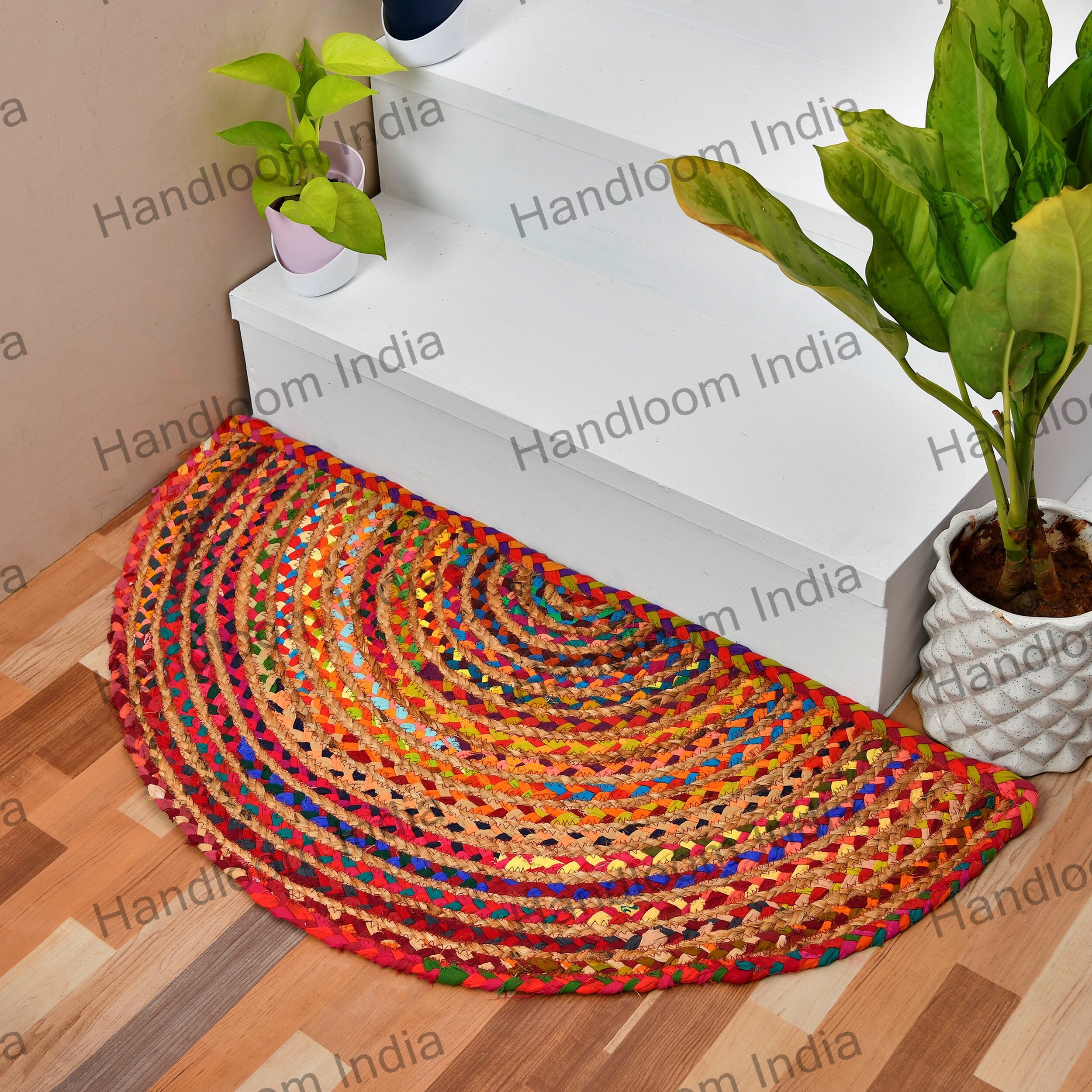 Entryway Doormat, Striped Doormat, X Large Doormat, Half Moon Area Rug, Boho Jute Rug, Braided Doorm...