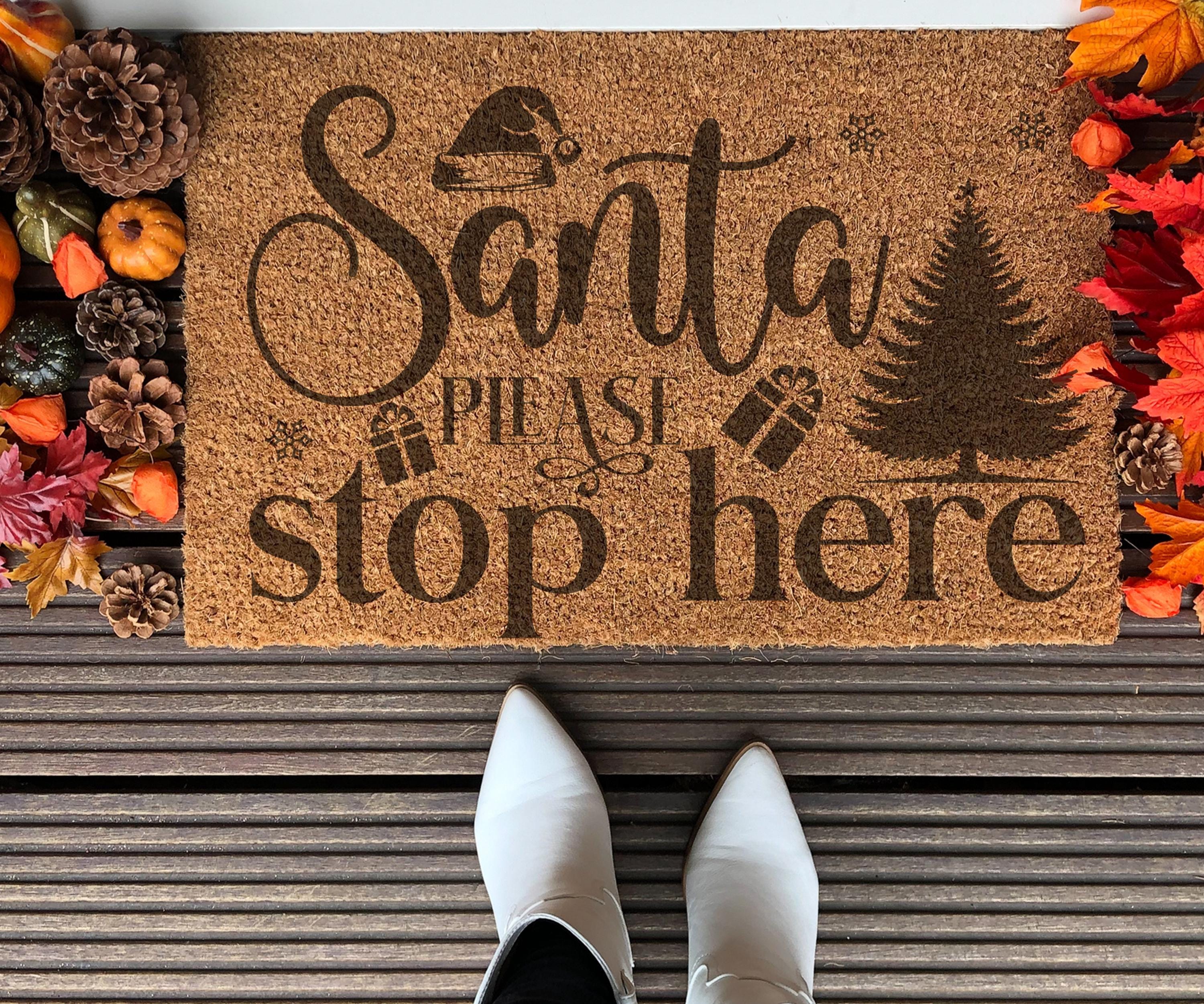 Santa Please Stop Here Christmas Doormat, Holiday Front Door Mat,Fu...