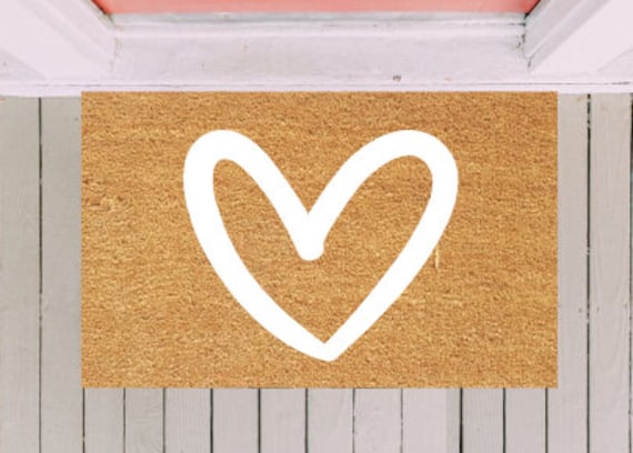 White Heart Doormat, Front Door Mat, Custom Doormat, Entry Decor, H...