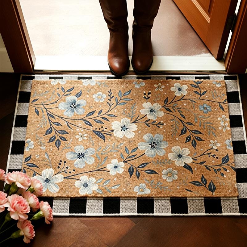 This Blue Floral Doormat features a refreshing blue flower design that blends modern farmhouse charm...