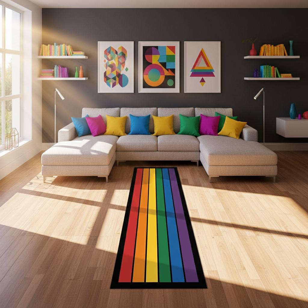 Rainbow Stripe Runner Rug - Colorful Modern Hallway Carpet | Vibran...