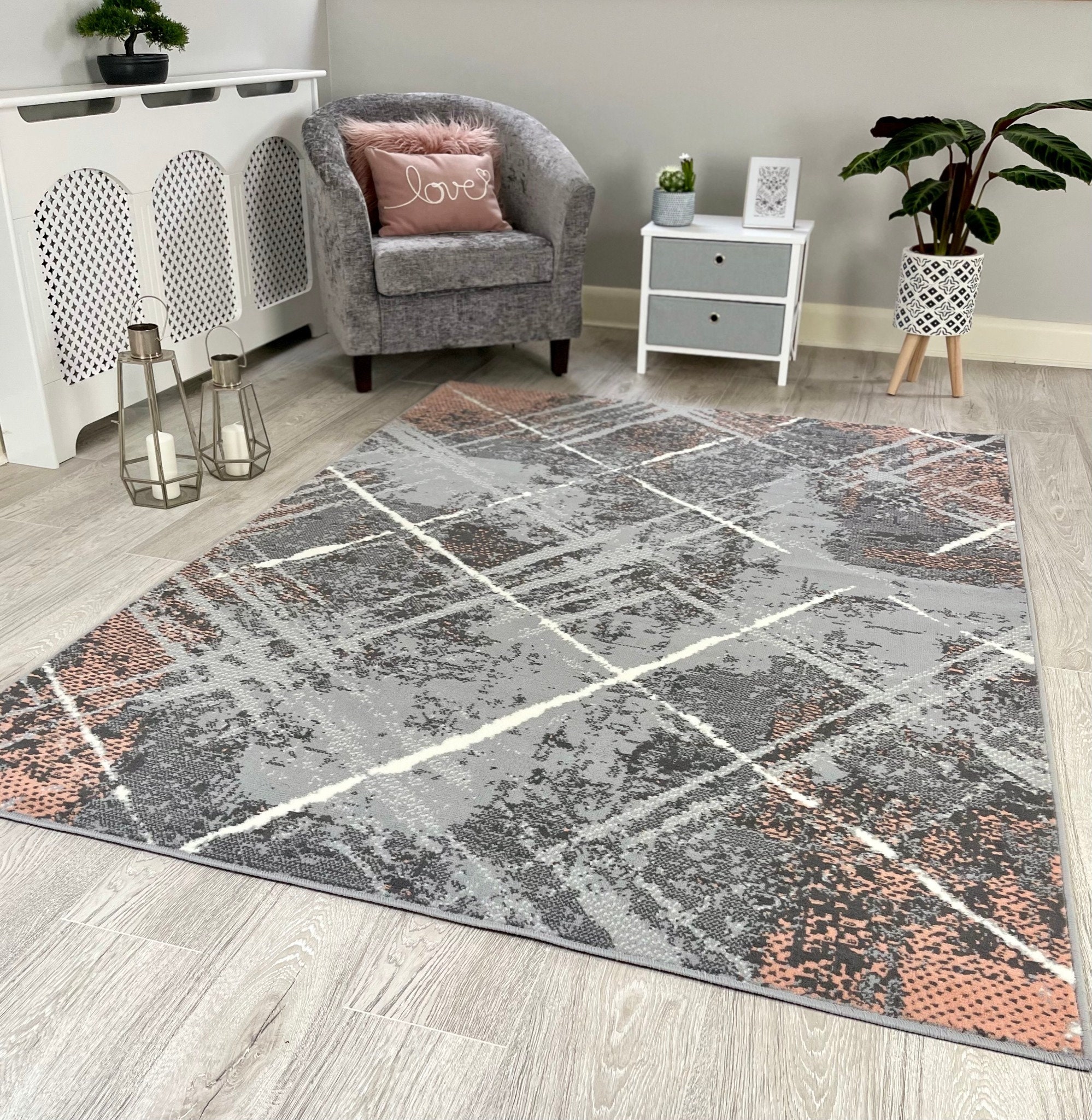 New Modern Blush Pink Grey Tartan Floor Carpet Mats Rugs Long Hall ...