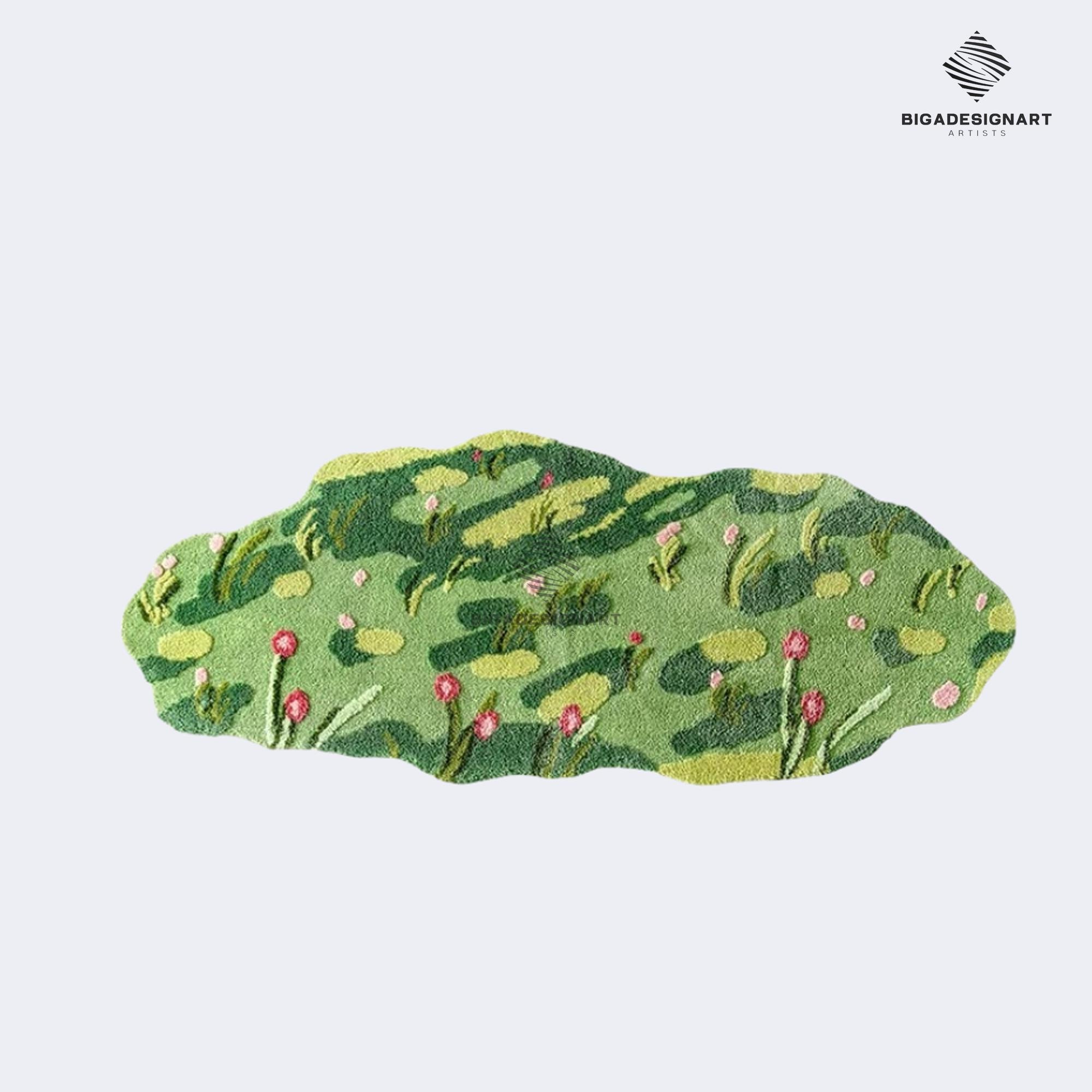 Green Moss Flower Rug - Colorful Moss-Inspired Flower Rug | Handmade Abstract Nature Rug for Bedroom...