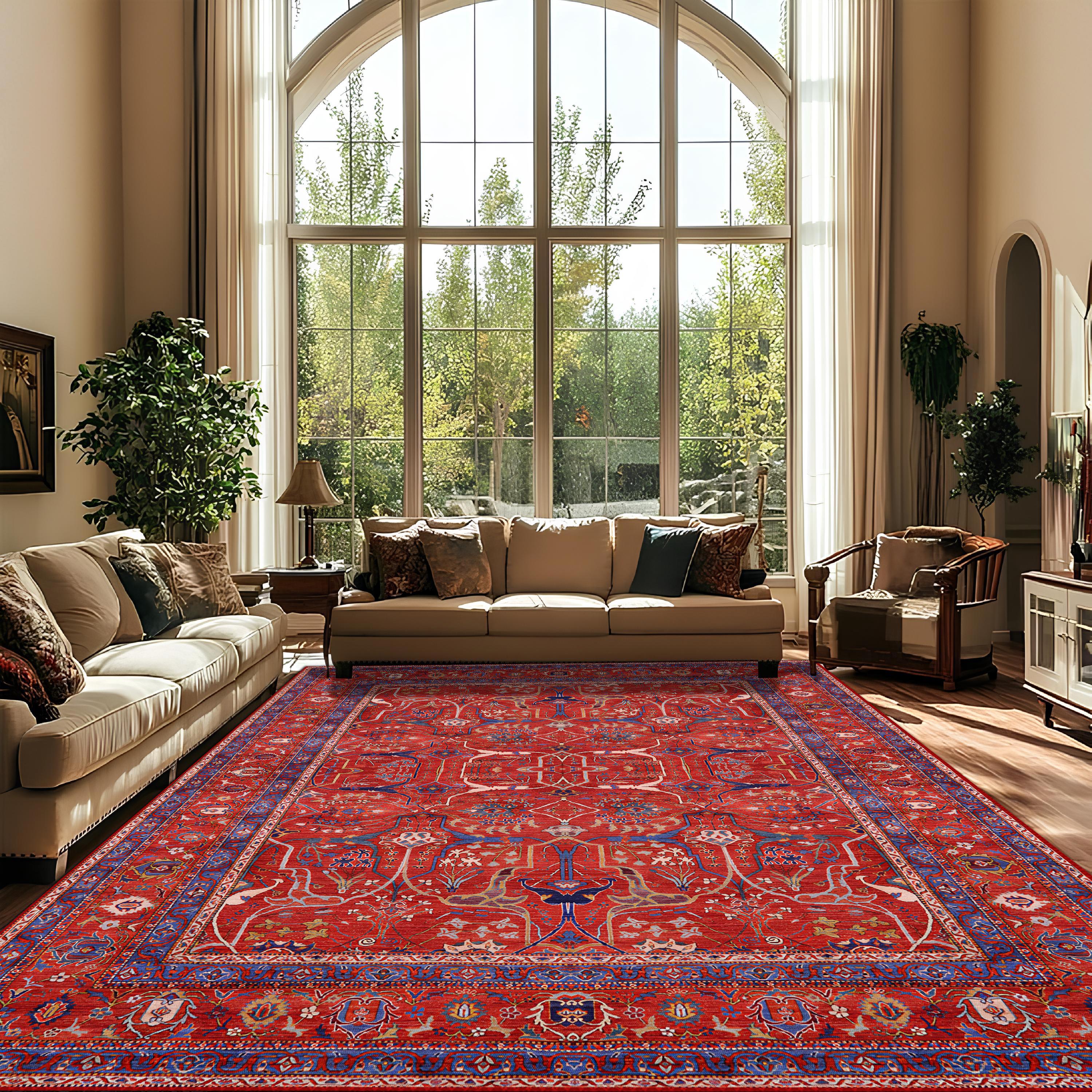 KonakArt DIGITAL PRINTED machine washable meander rectangular non-slip living room carpet will suit ...