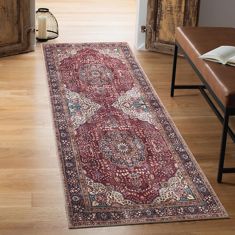 Persian Style Vintage Area Rug, Water-Resistant and Stain-Proof Car...