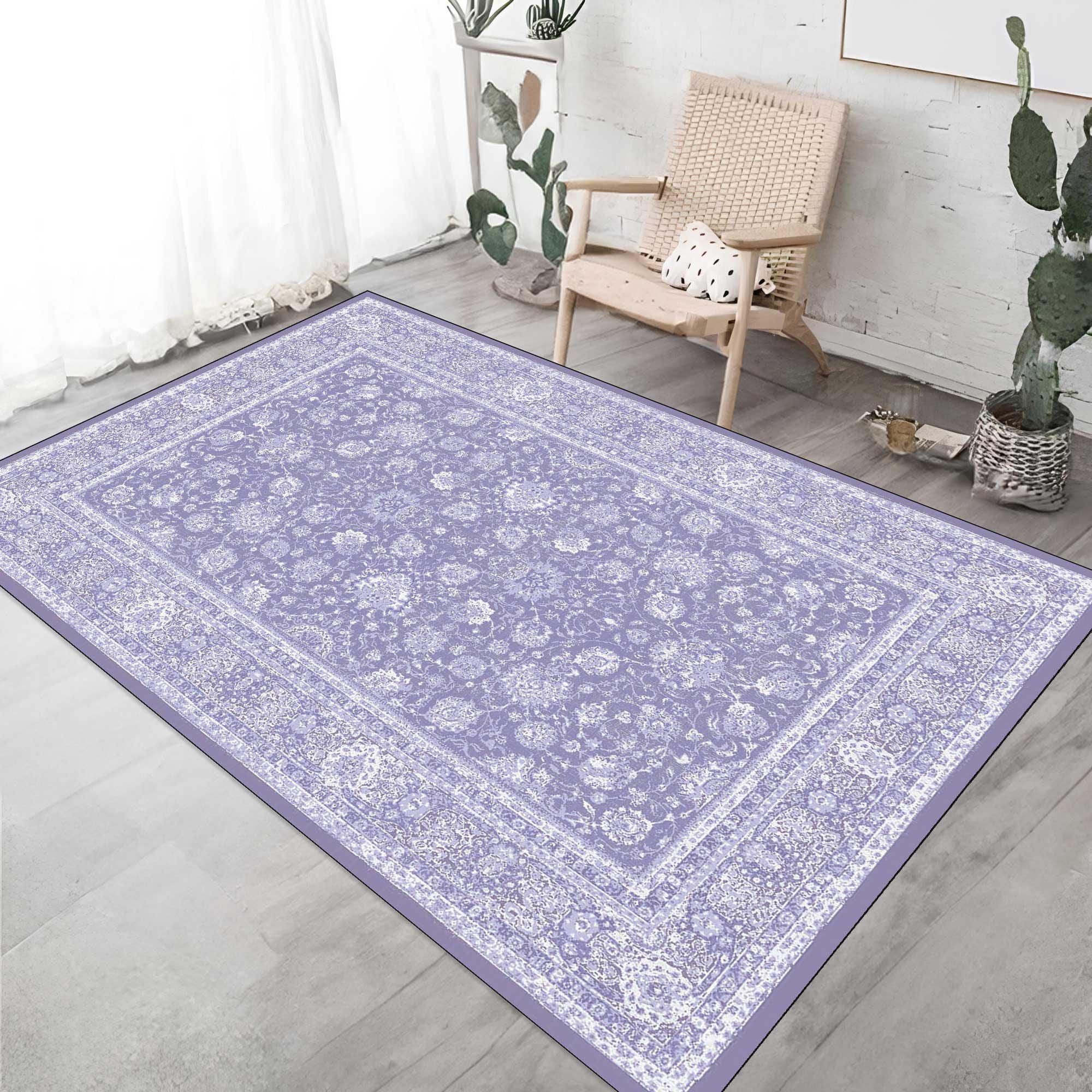 Purple Colored Rug, Light Purple Detailed Rug, Light Color Rug, Pla...