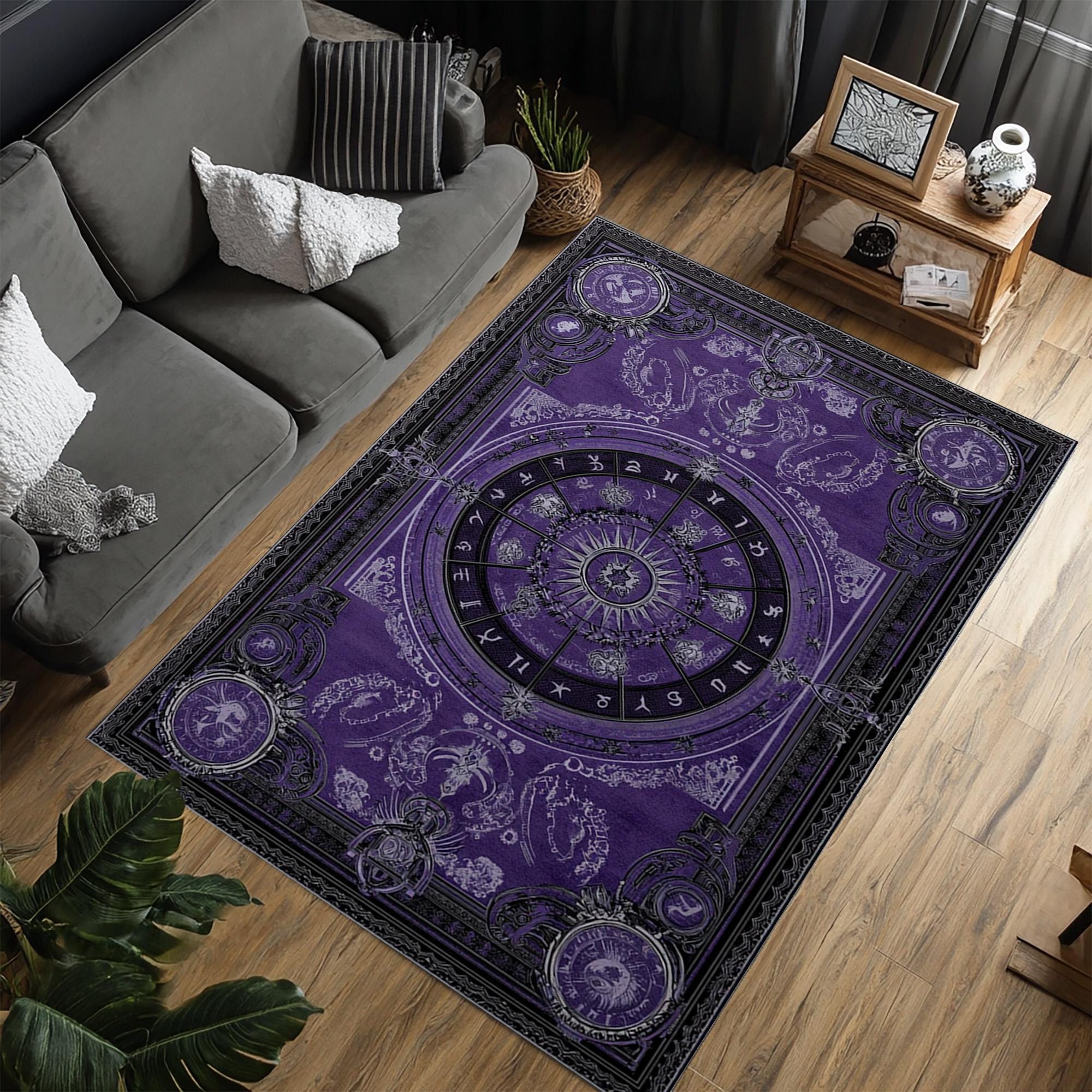 Purple Zodiac Rug, Mystic Astrology Horoscope Area Carpet, Gothic R...