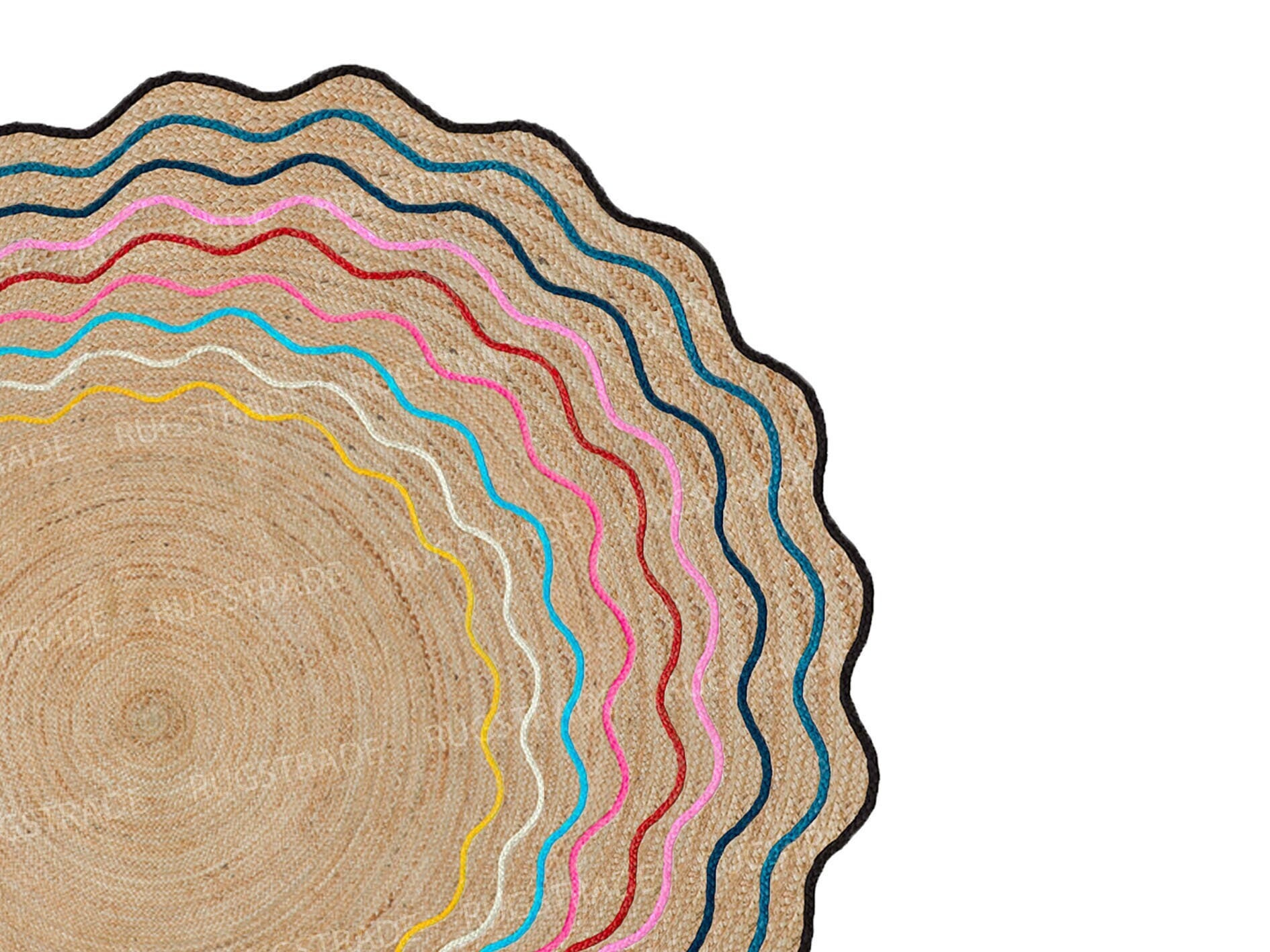 Scallop Jute Rug - Round Jute Rug, Wavy Jute Round Rug, Boho Decor,...