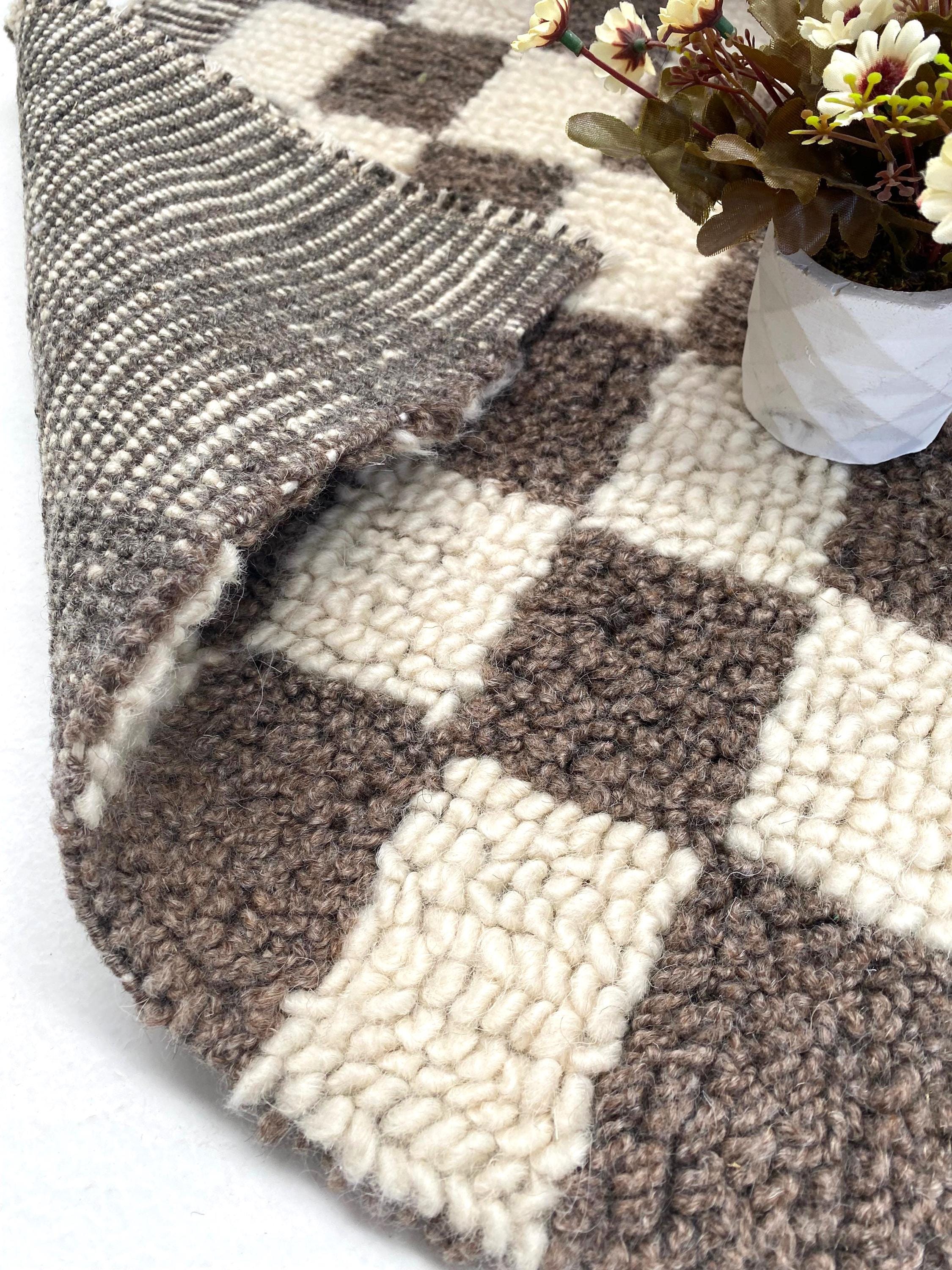 2x3 Doormat Rug, 2x3 Brown White Doormat Rug 2x3 Wool Handmade Door...