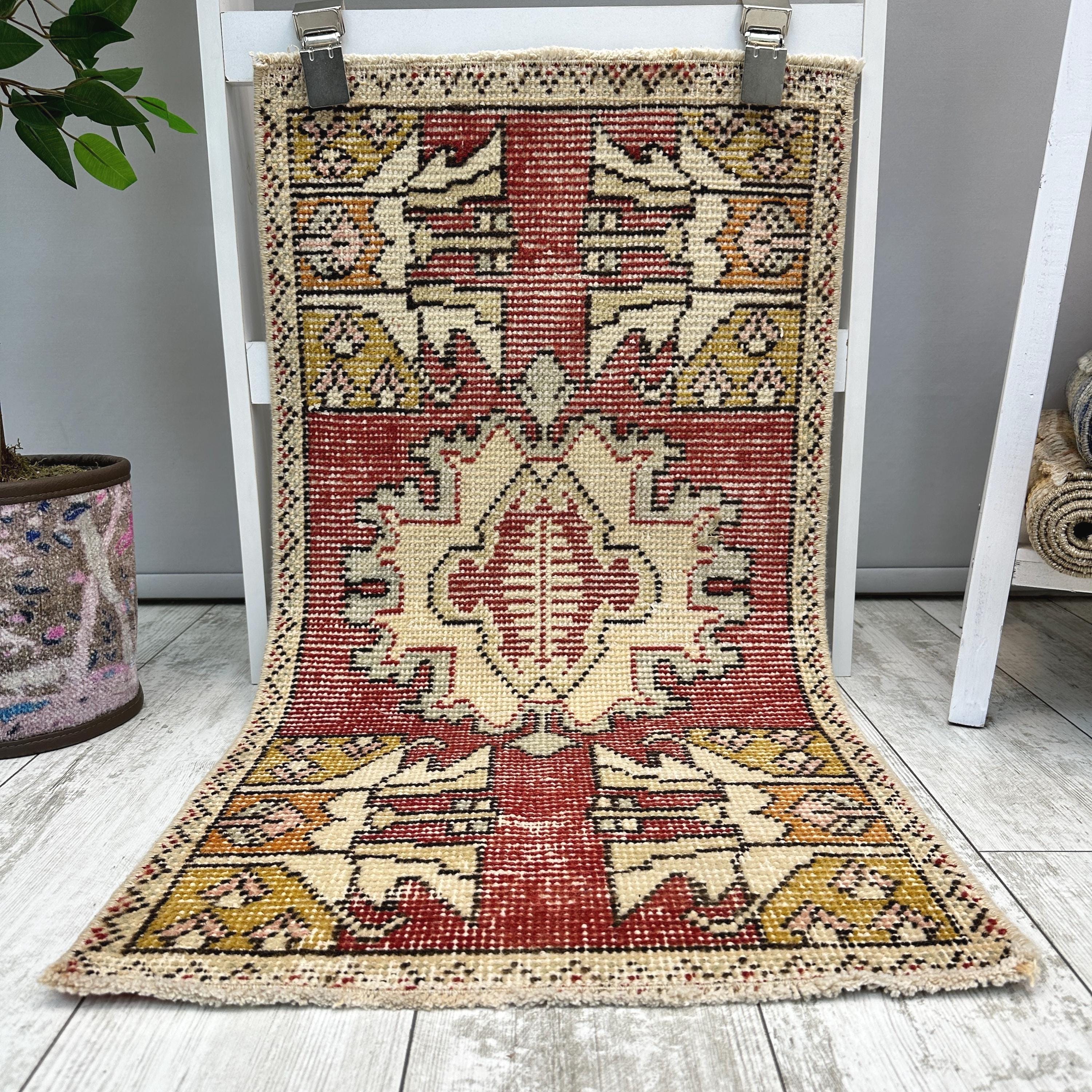 1x3 Small Turkish Rug, 1x3 Small Bohemian Rug, Doormat Rug, Small O...