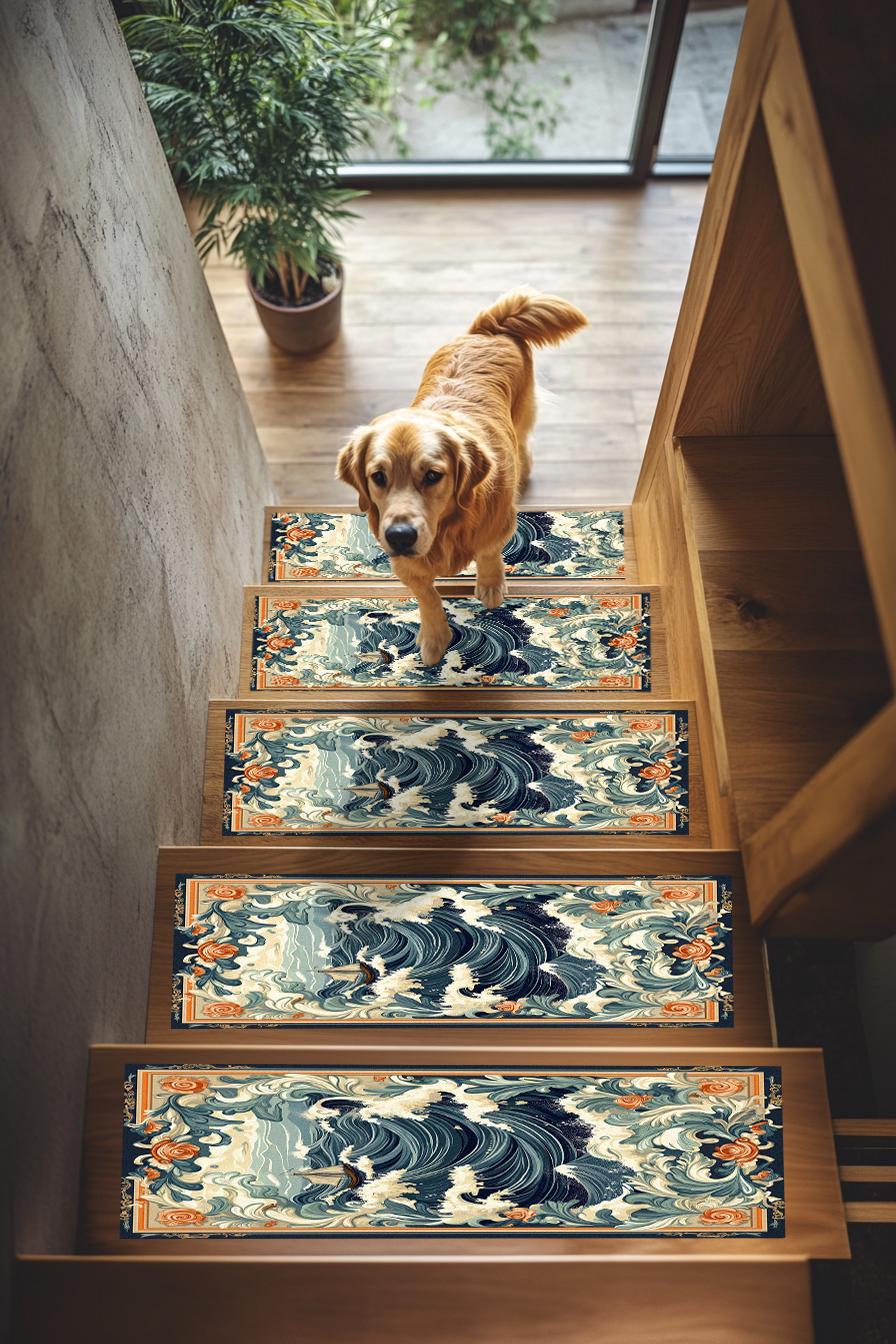 Navy blue stair mat, Ocean themed stair treads, Chenille stair pad,...