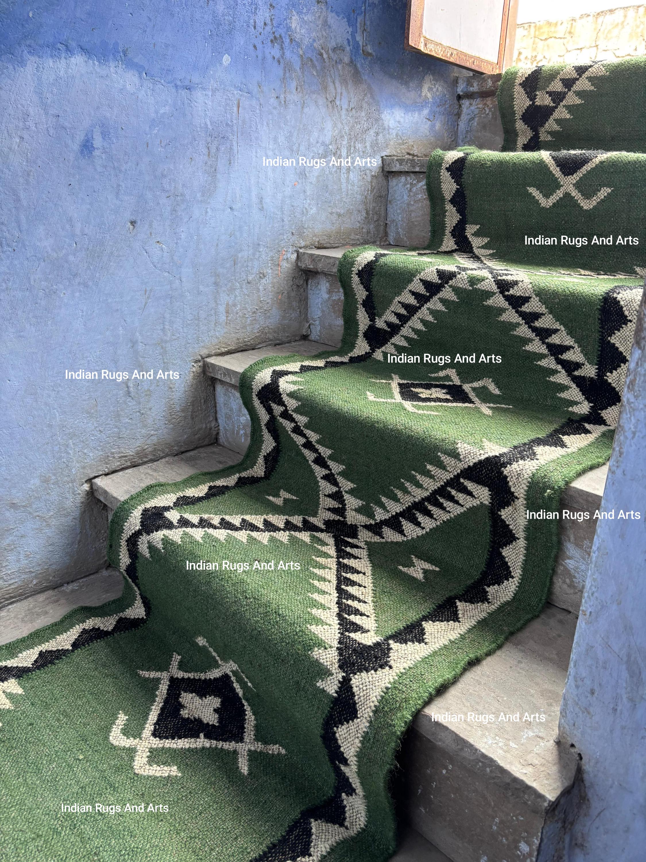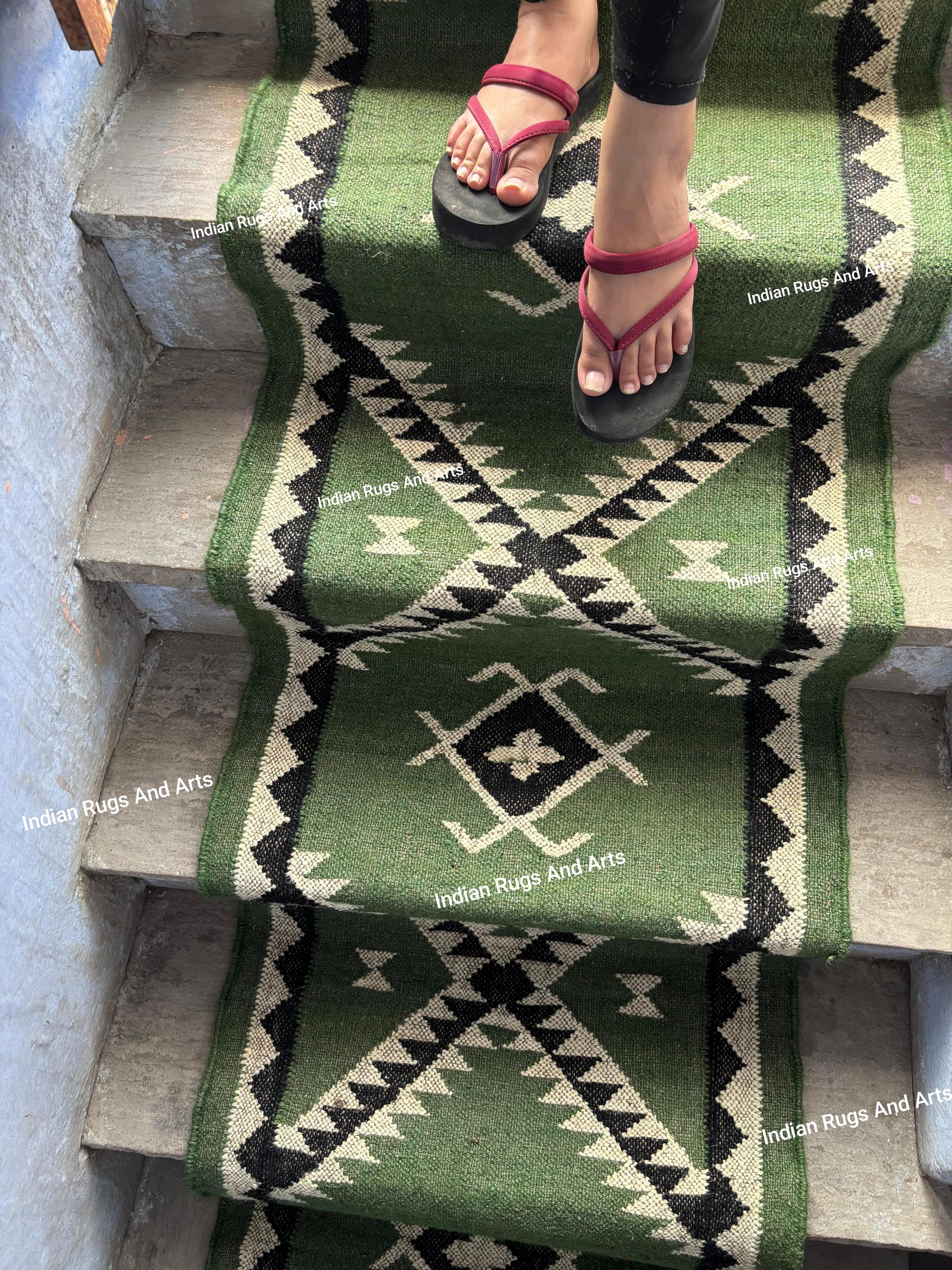 Stair Runner Rug, Jute Home Stairs Runner, Green Stairs Runner, Gre...