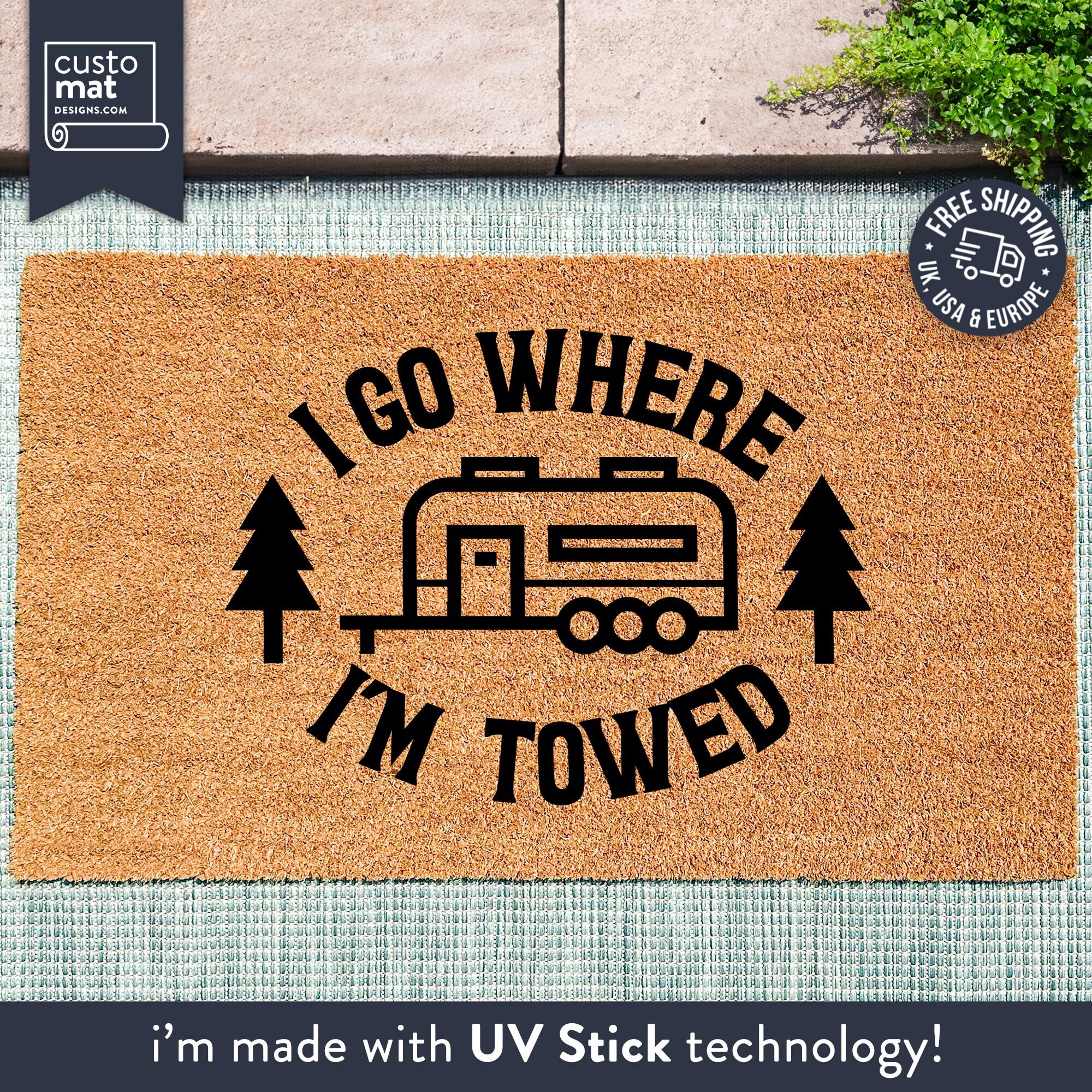 I Go Where I'm Towed Funny Travel Doormat - Customised Towing Doorm...