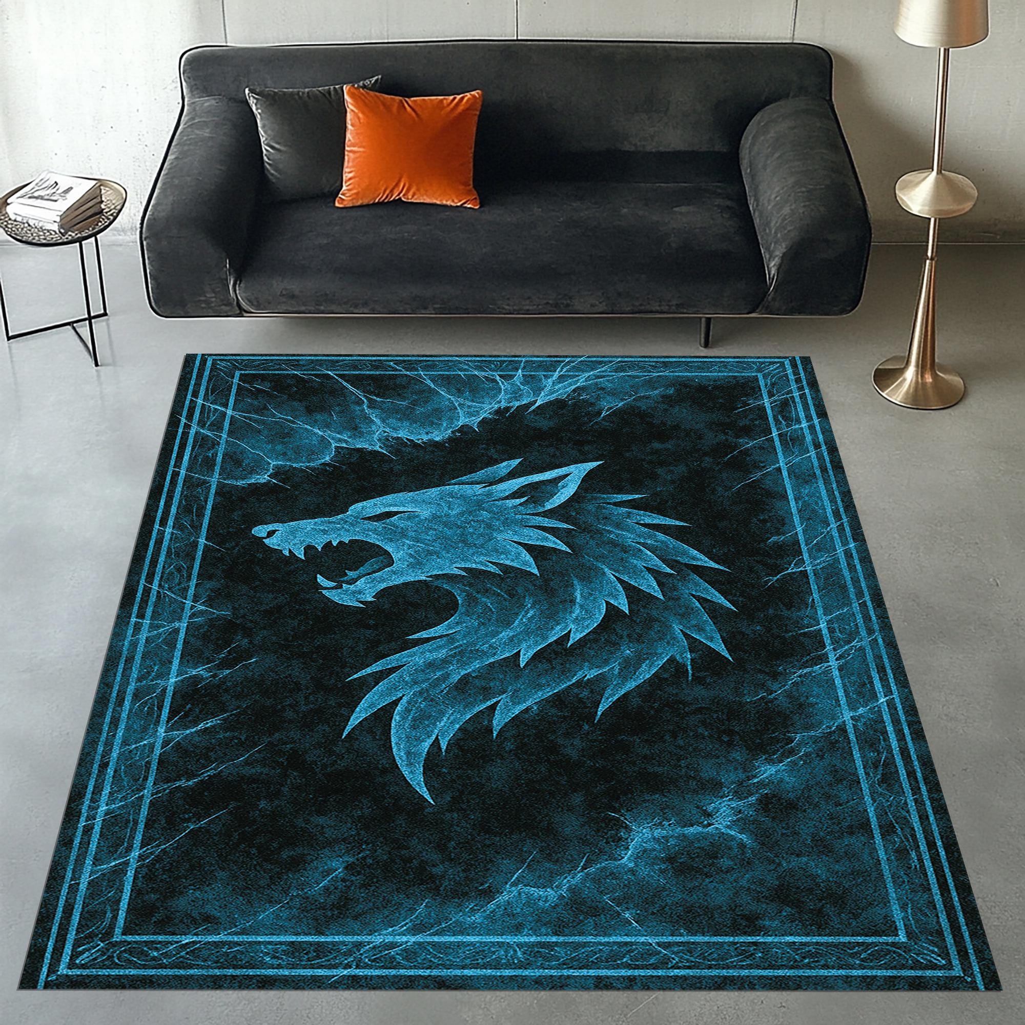 Witcher Wolf Medallion Rug Magic Signs Fantasy Gaming Area Rug Nons...