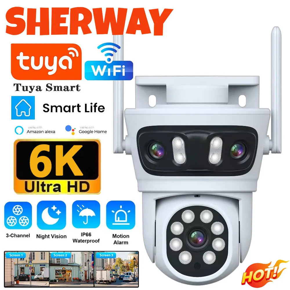 Tuya Three Lens PTZ WiFi Camera Outdoor 6K HD Three Screen IP Secur...