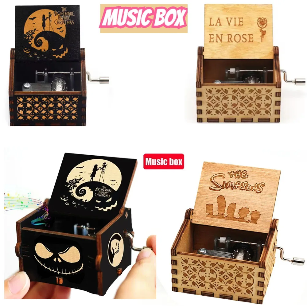 Retro Carved Wood Music Box Creative Chic Wooden Hand Cranked Music Box Home Decor Musical Box Hallo...