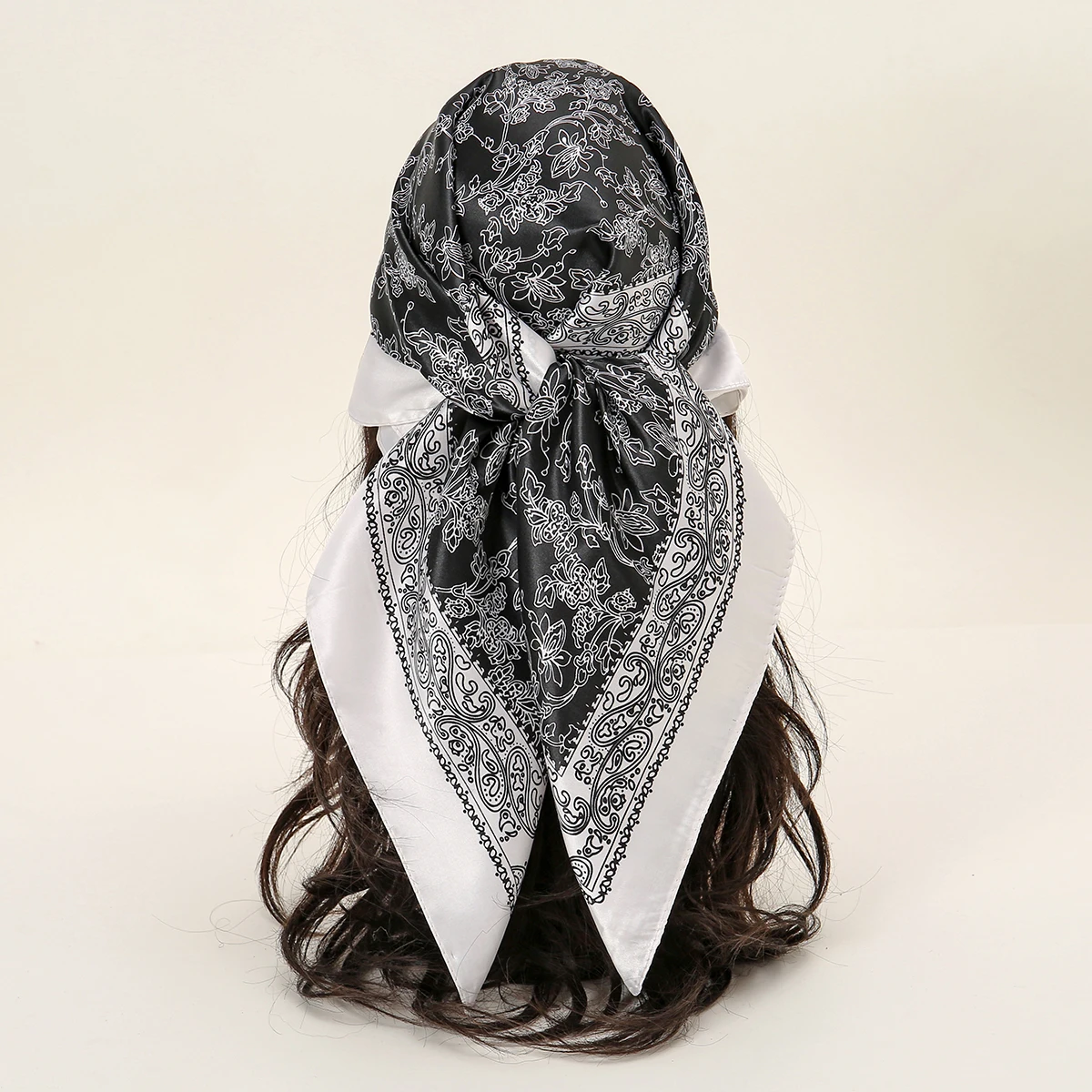 90*90cm Printed Square Scarf Women Silk Feeling Satin Wraps Line Fo...