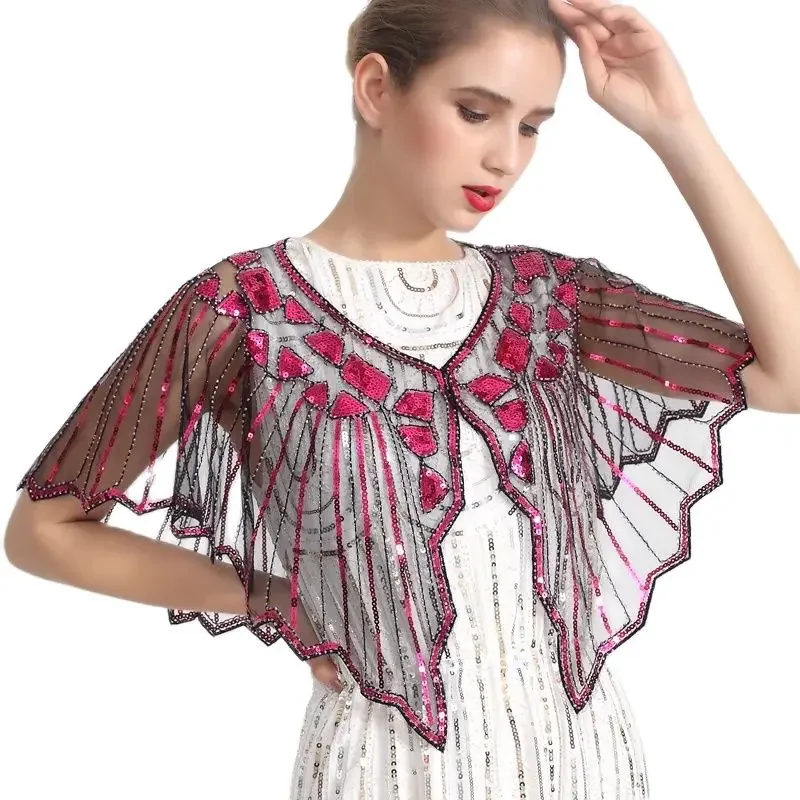 Ecoparty Sequin Beaded Cape Vintage 1920s Shawl Wraps Flapper Cover...