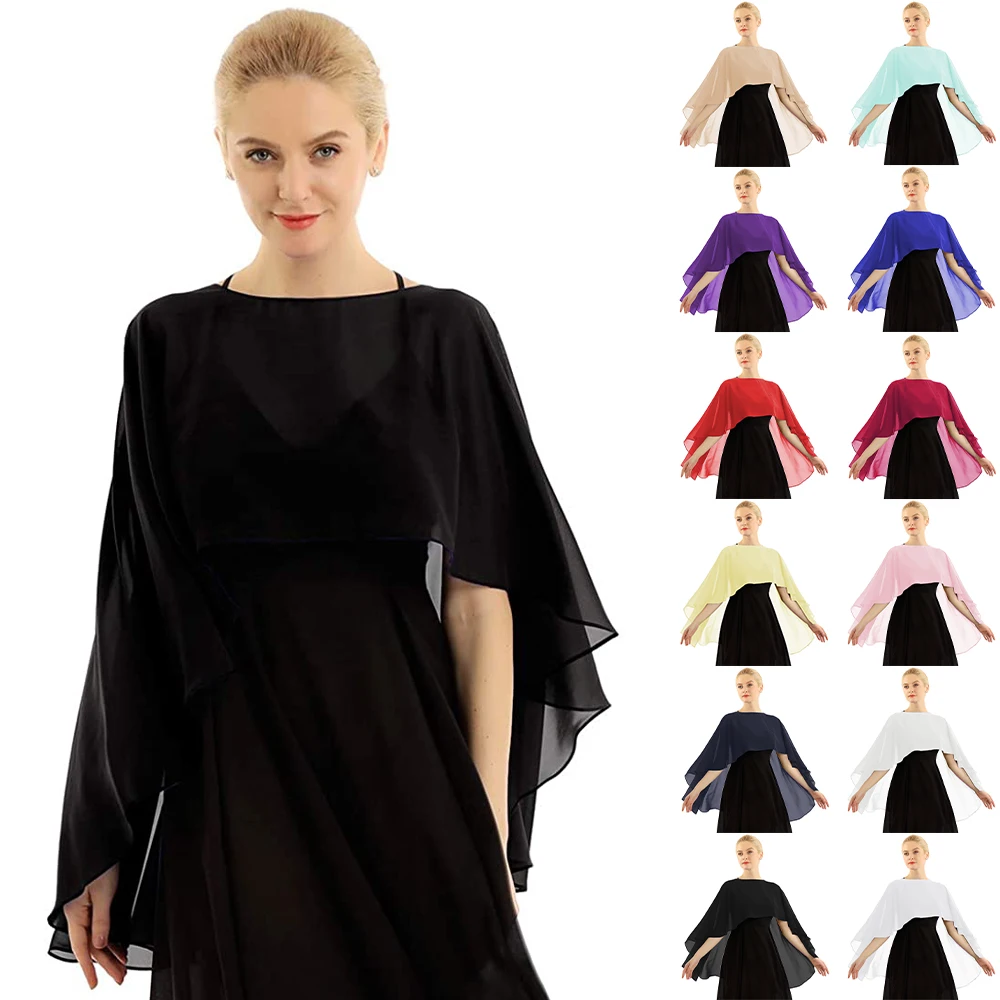 Women Wedding Bridal Cape Soft Lightweight Chiffon Shawl High Low Long Formal Wrap Lady Evening Prom...