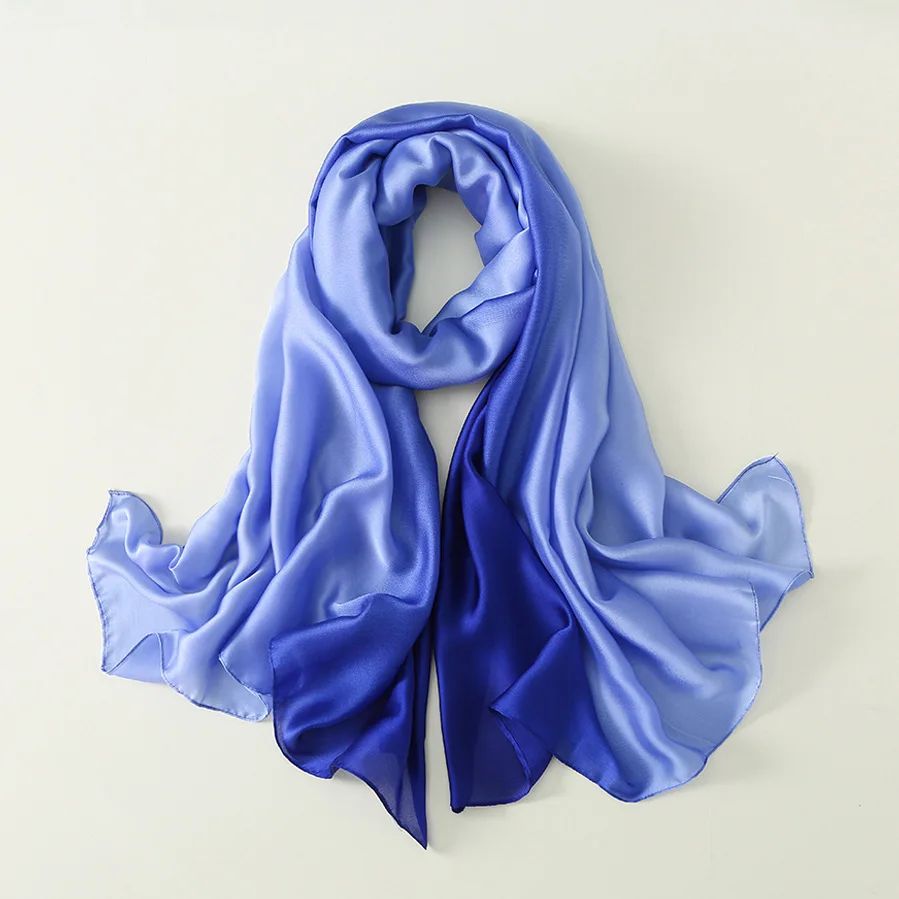 2024 Luxury Brand Solid Color Gradient Silk Scarf Women Fashion Lux...