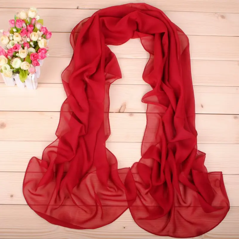 New Fashion Temperament Pure Monochrome Women's Long Chiffon Scarves Wholesale Yiwu Plain Pure Color...