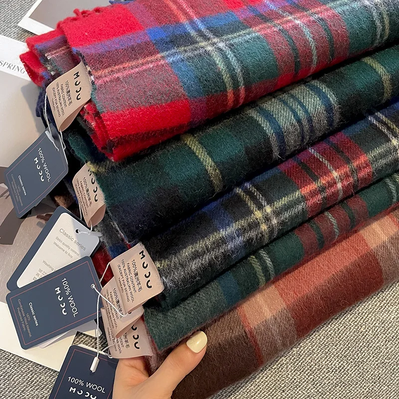 2026 New Classic Plaid Design Mongolia Cashmere and Wool Scarf Red ...
