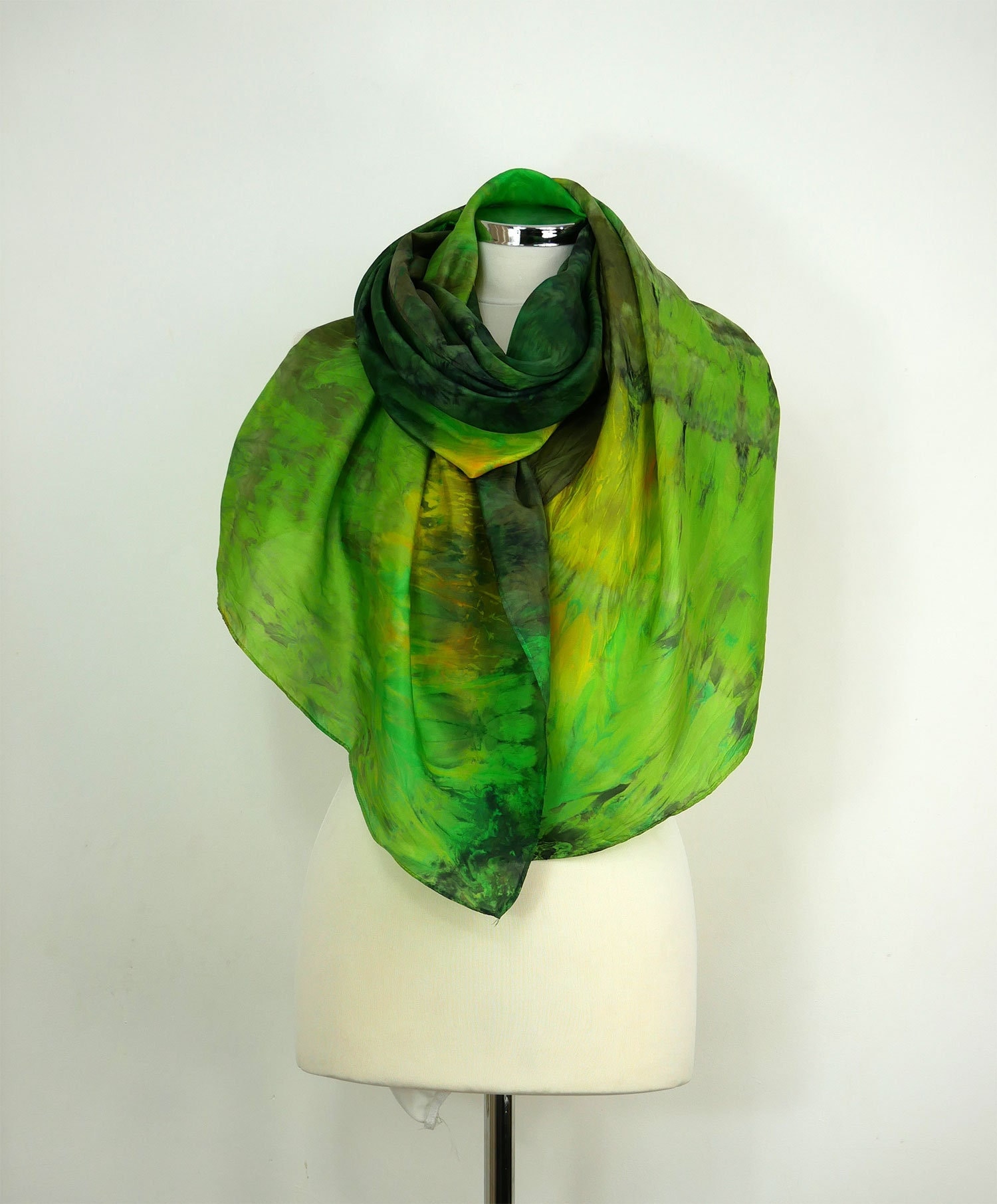 Green silk scarf Enchanted Forest Oversized silk scarf green yellow...