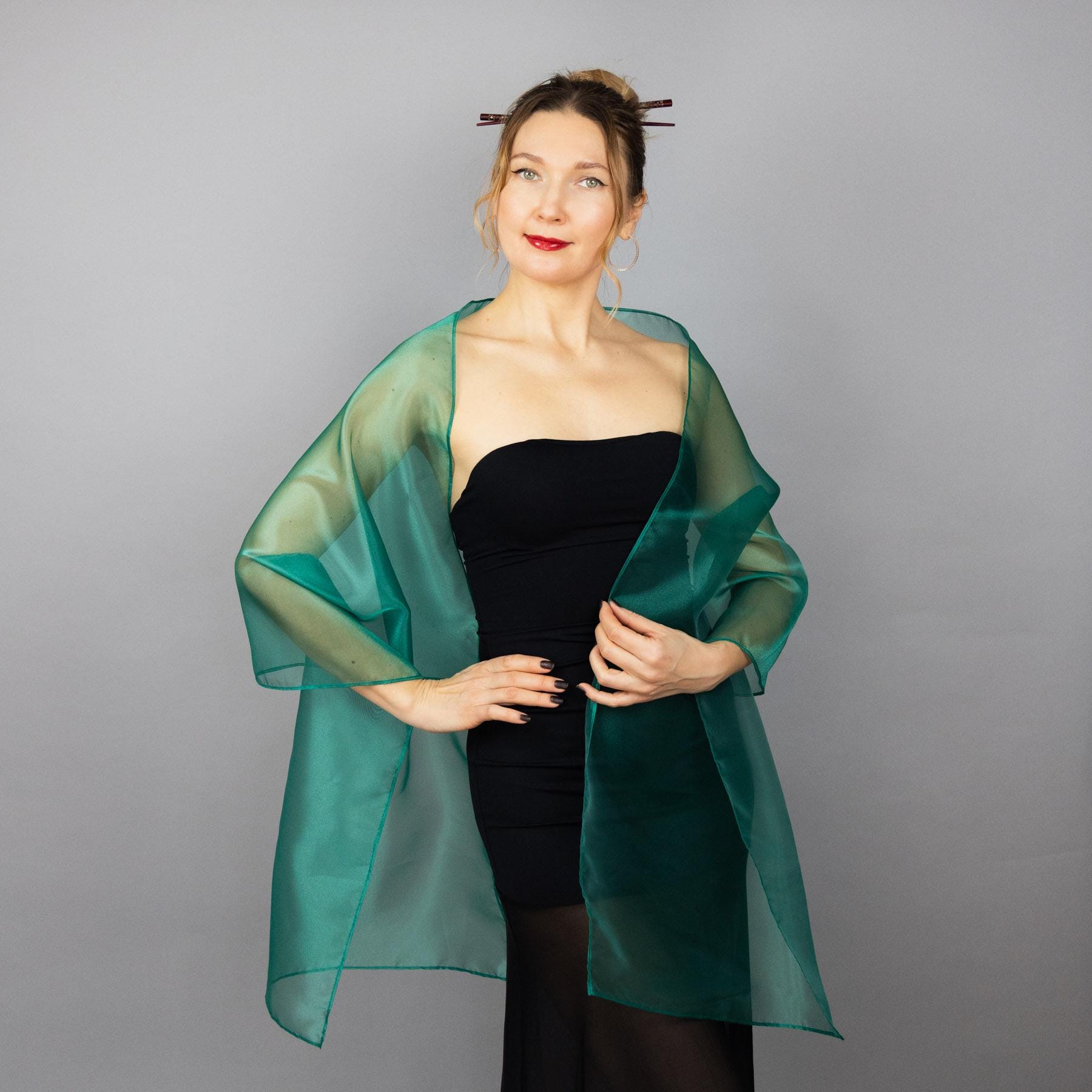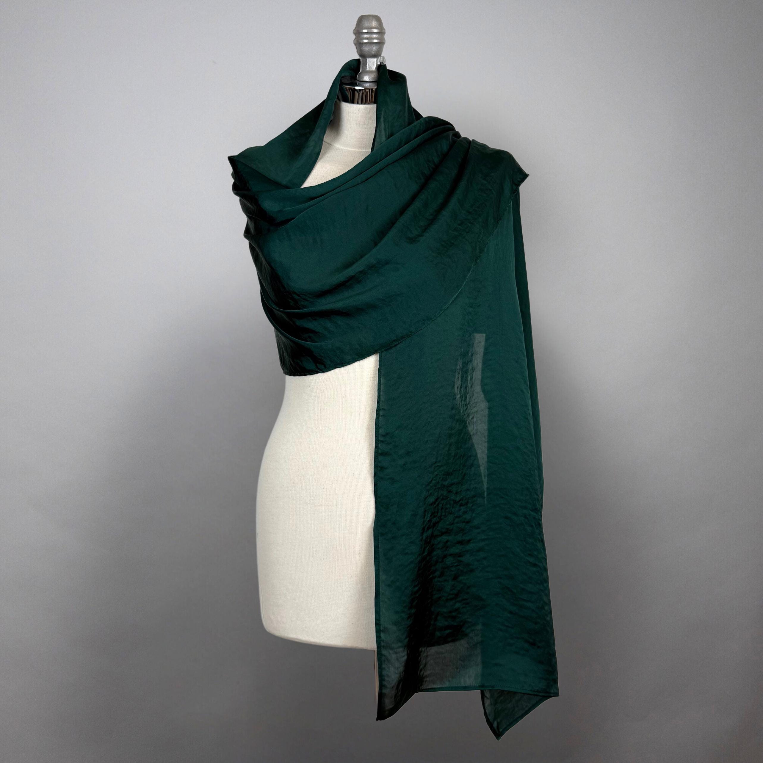 Green satin wrap green shawl deep green shrug dark green scarf ligh...