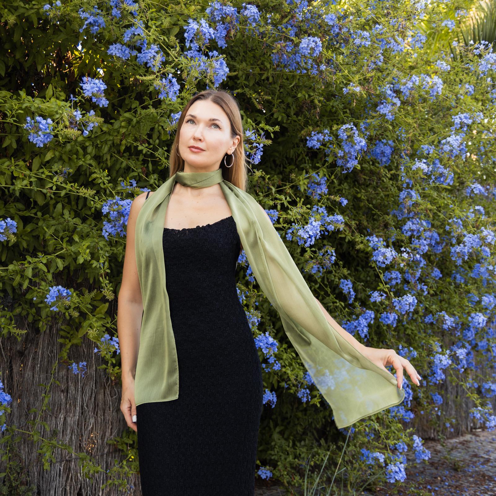 Simple and elegant sheer scarf. Made of soft chiffon. Color: dark green (other colors are available)...