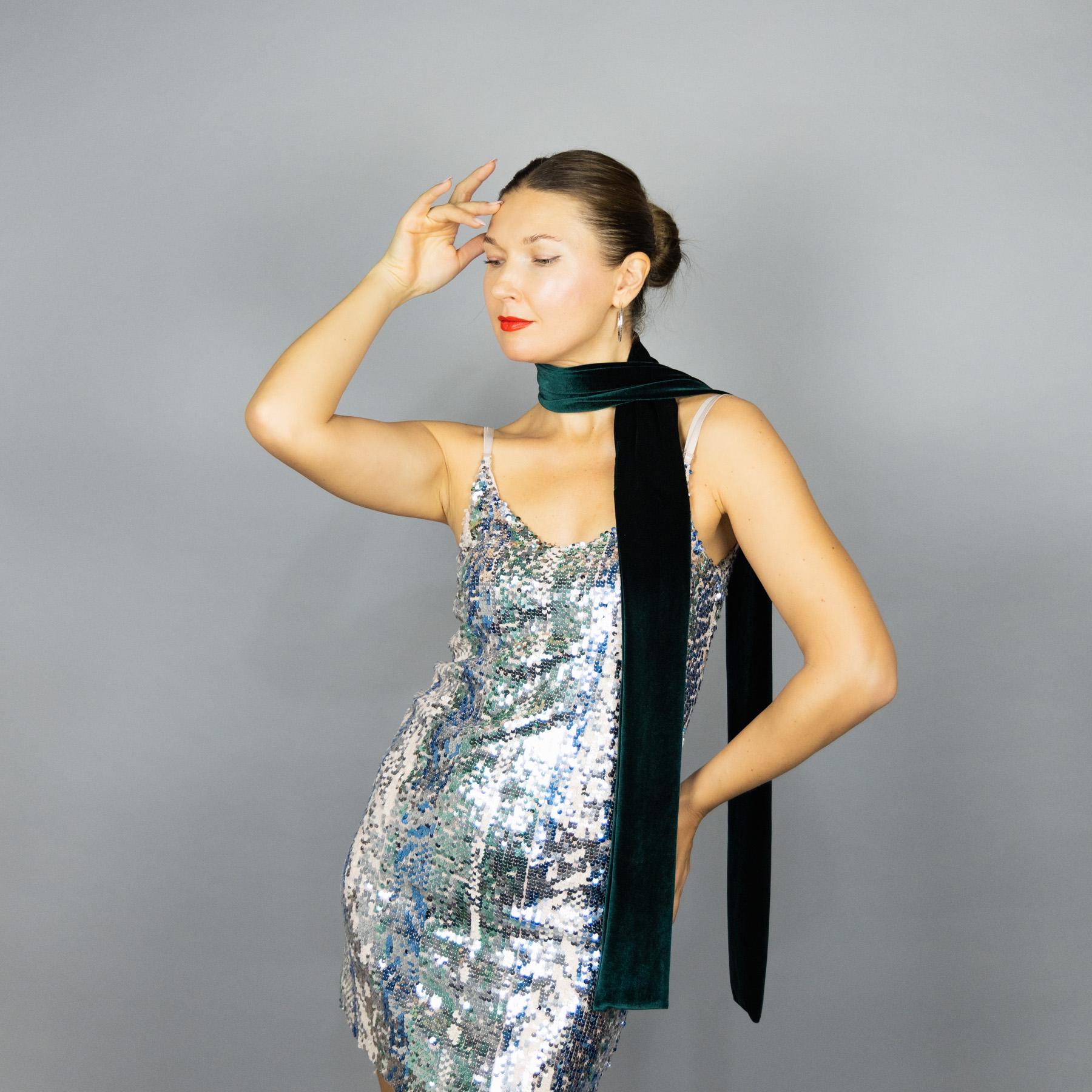 A very elegant velvet long scarf. You can also buy a neck scarf, shawl, greek cape or a matching bag...