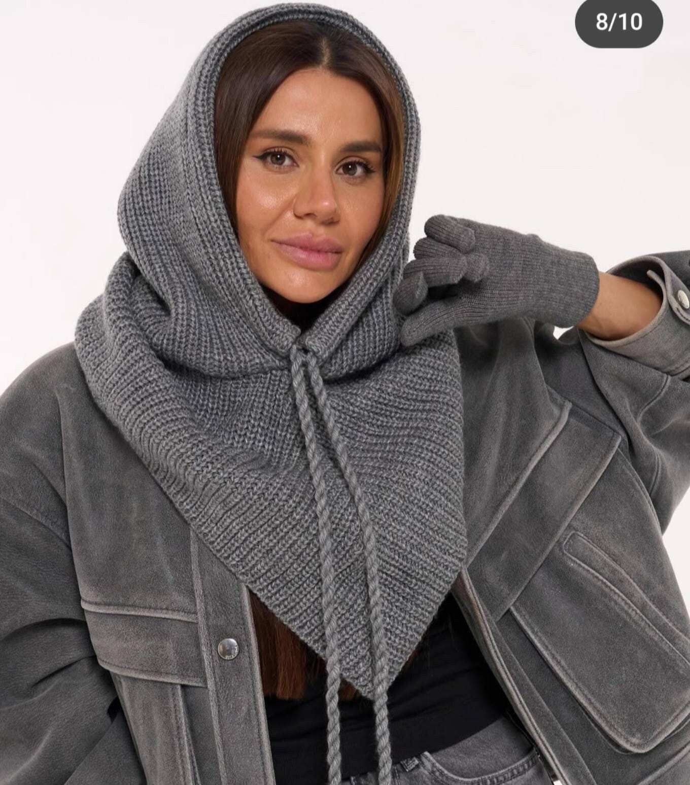 Ladies scarf with hood, winter hood for women, womens wool knitted cowl hats, hoodie scarf knit, dar...