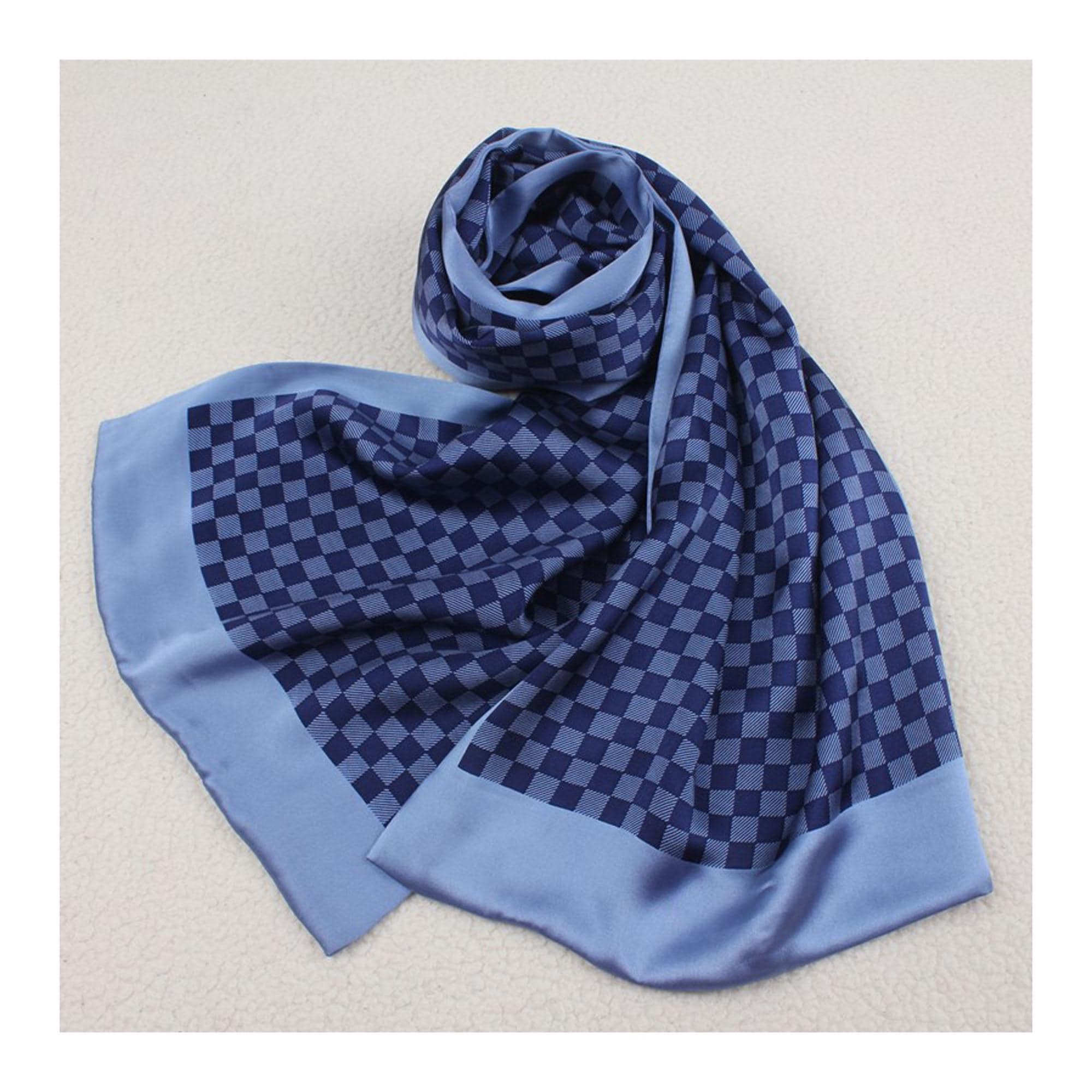 PURE SILK SATIN Men Luxury Long Scarf Double Layered Neck Wrap Navy...