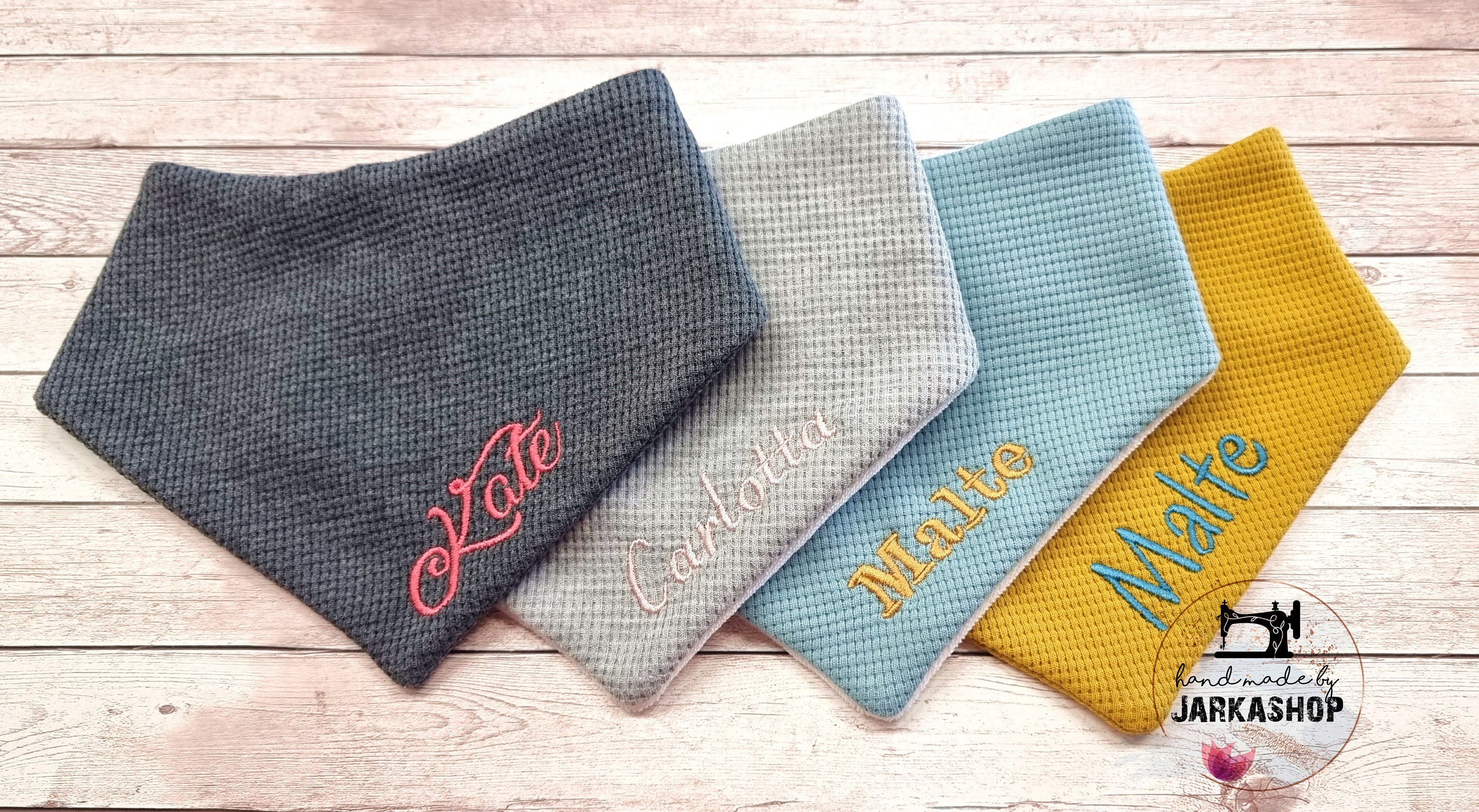 "Super soft triangular scarf is made of jersey fabric and sweat fabric. If desired, also with n...